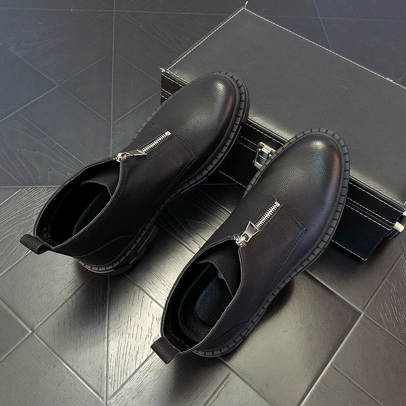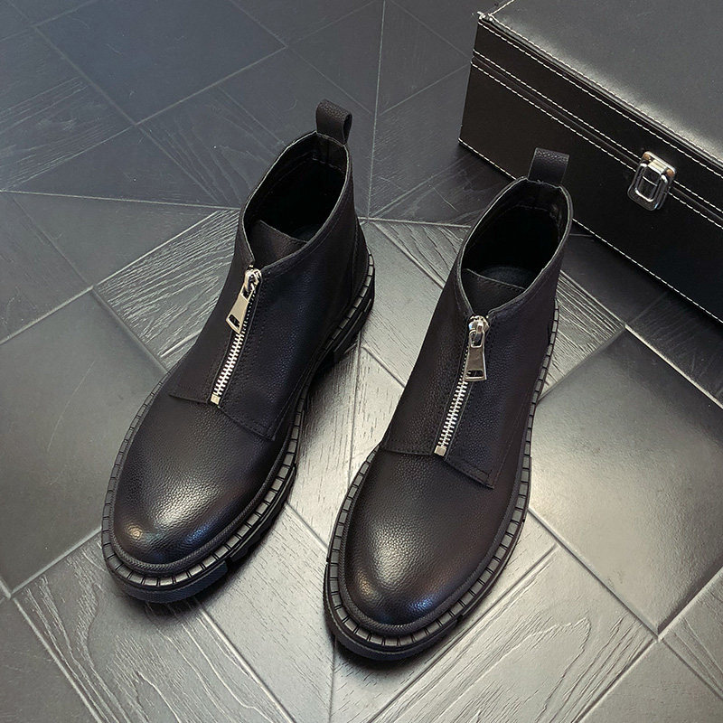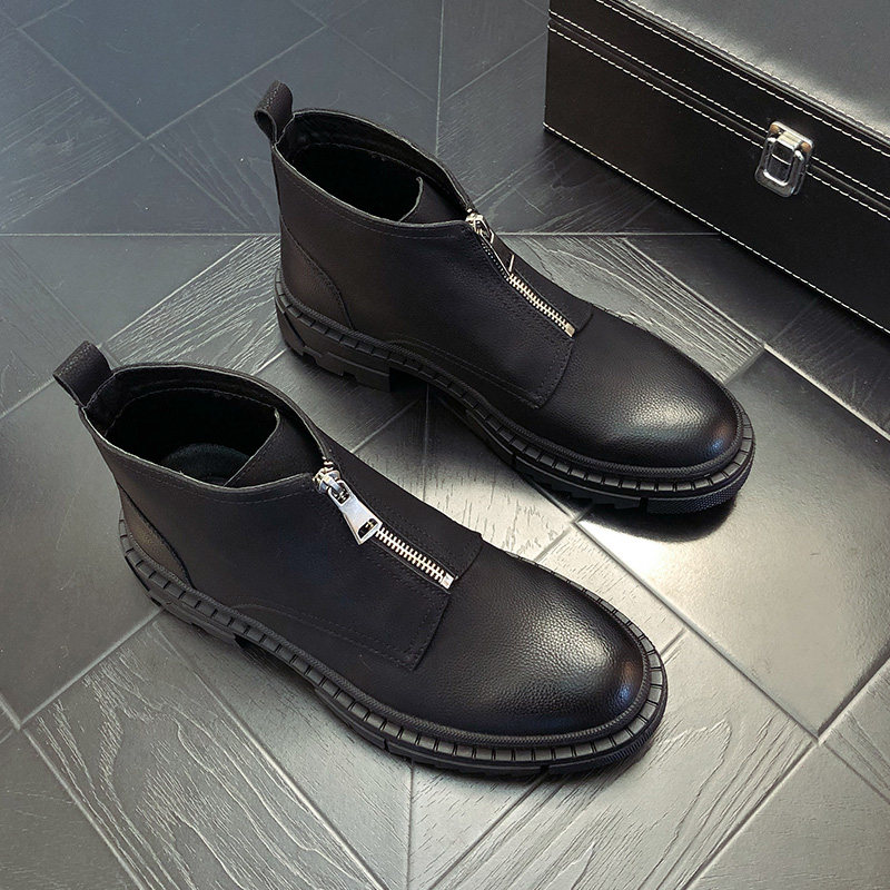 Round-headed black high-cylinder shoes male British Martin boots autumn and winter casual Han hair stylist men zip shoes tide