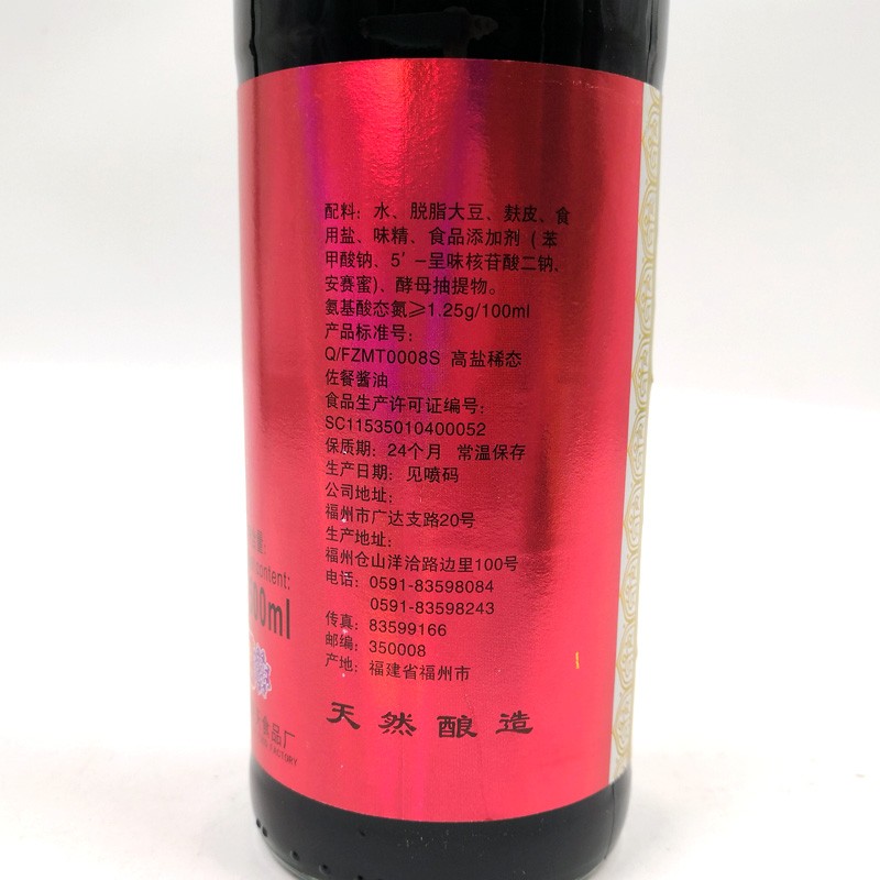 Fujian Special Products Condiment Condiment Condiment DELICIOUS SOY SAUCE 500ml * BOTTLE BREWING SOY SAUCE Soy Sauce Cream