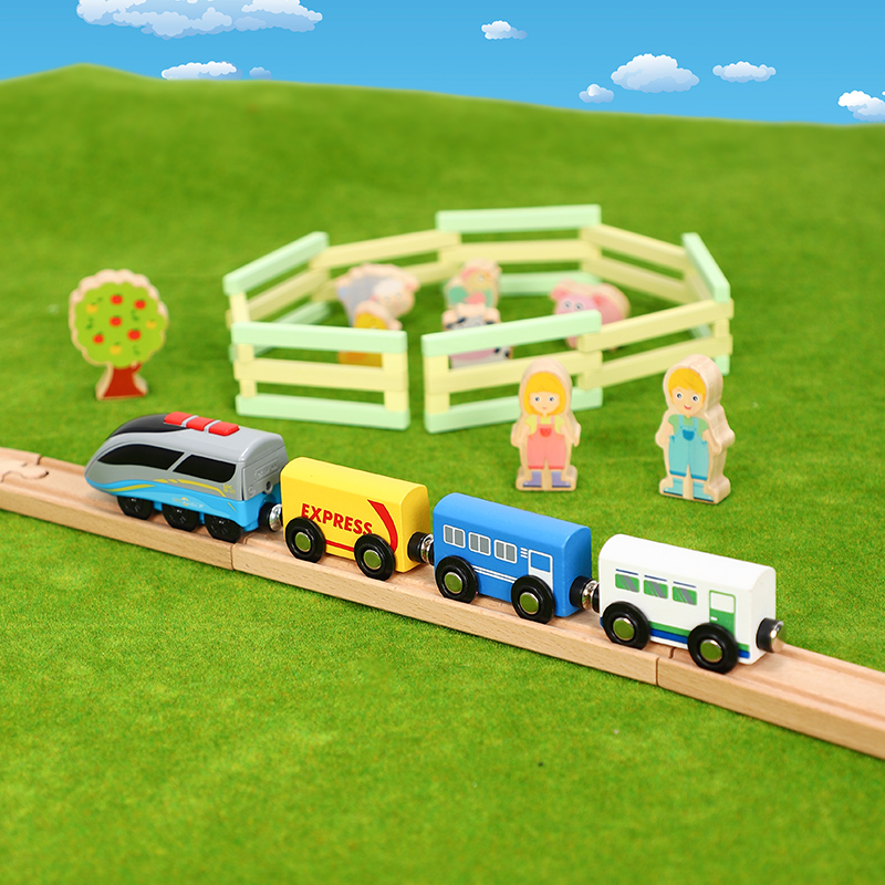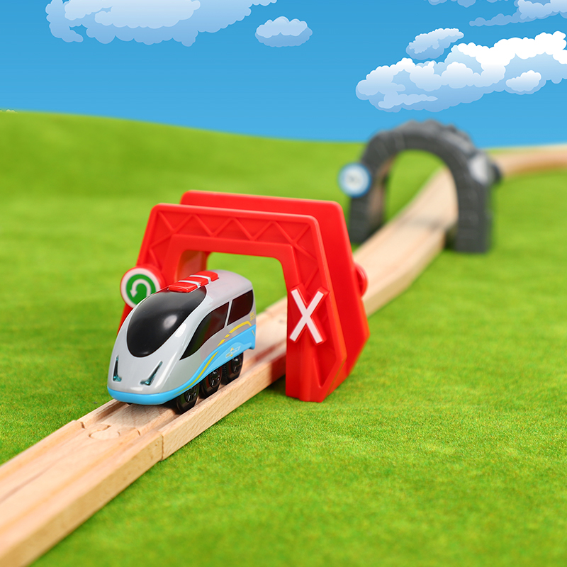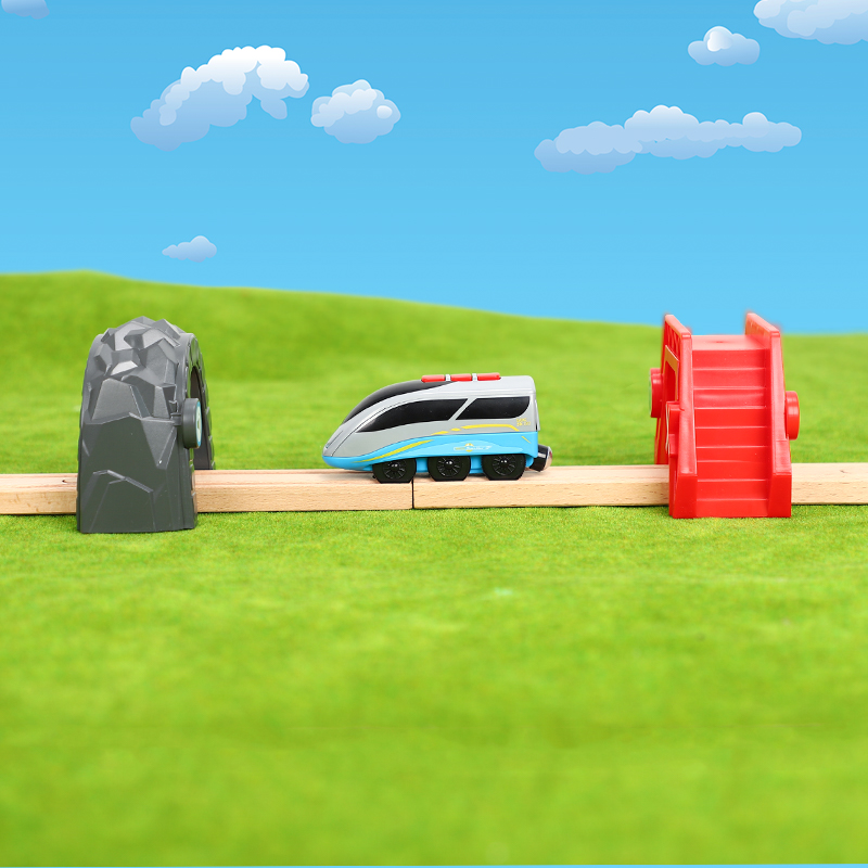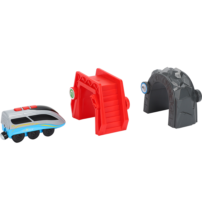 Children's electric car head induction tunnel car vocal luminous wooden railcar boy toys compatible with rice rabbit