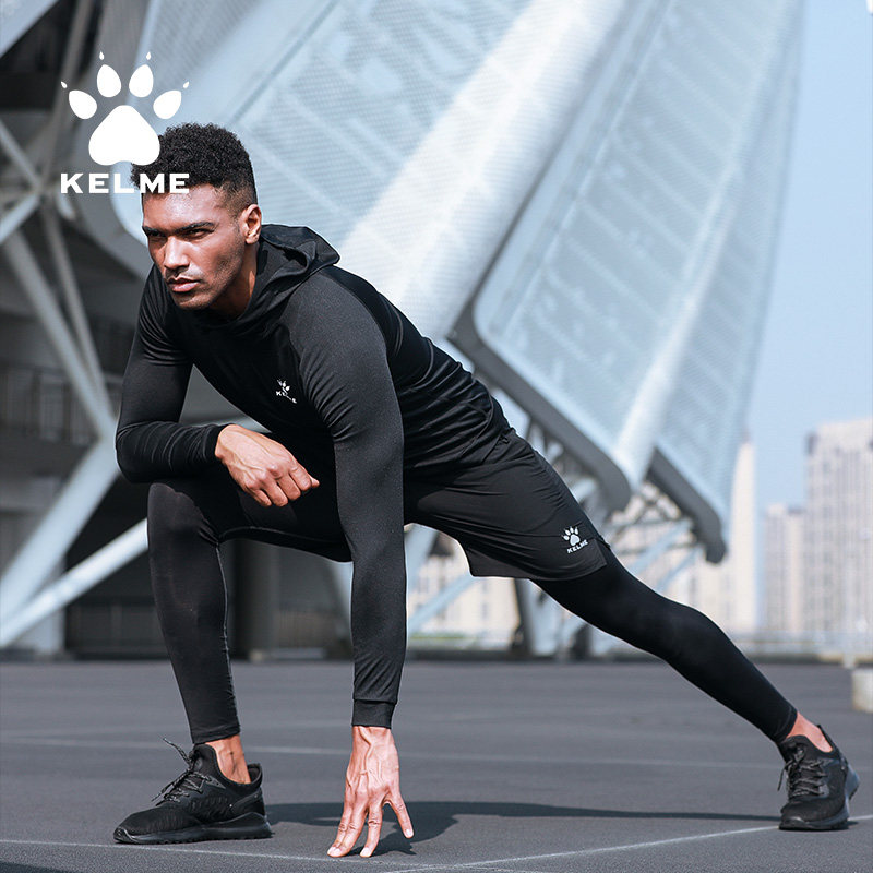KELME fitness clothing jacket men's quick-drying breathable running training tights elastic compression hooded cardigan