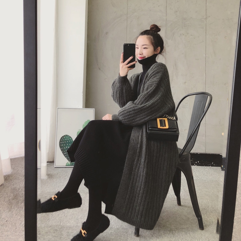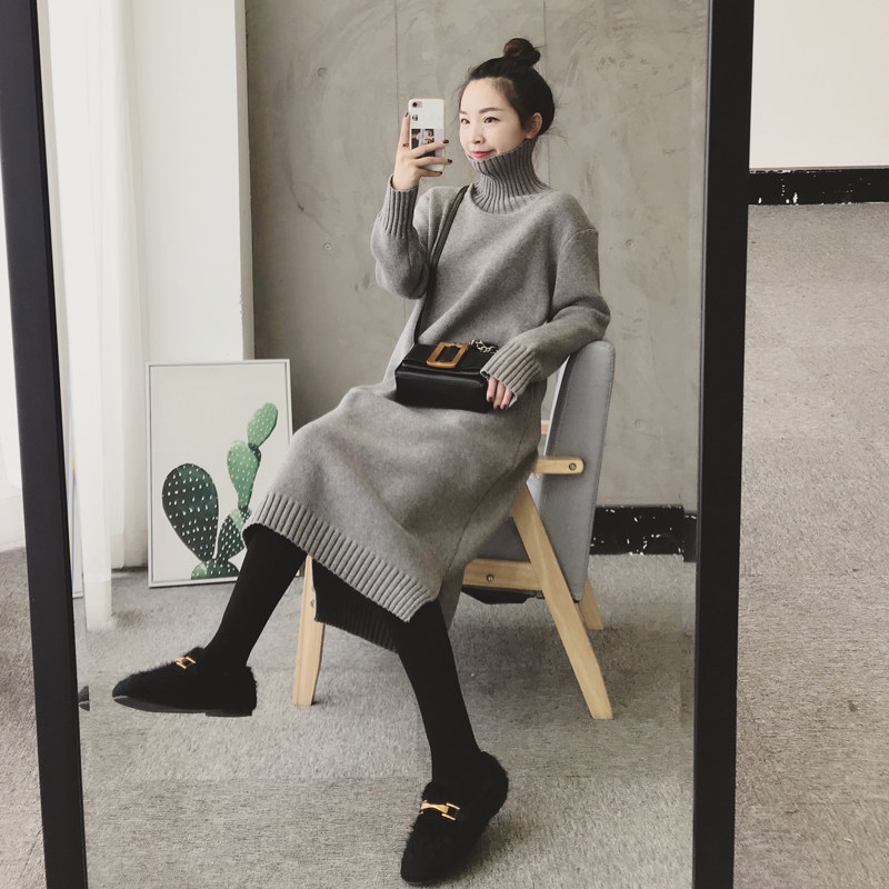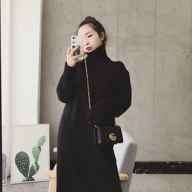 High-neck mid-length sweater skirt women's 2022 new autumn and winter loose and thickened bottoming with over-the-knee knitted dress
