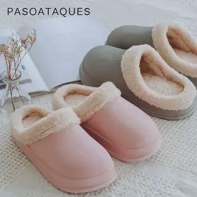 eva lightweight Ladies cotton slippers kitchen waterproof winter plus velvet belt waterproof home thick bottom men non-slip