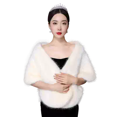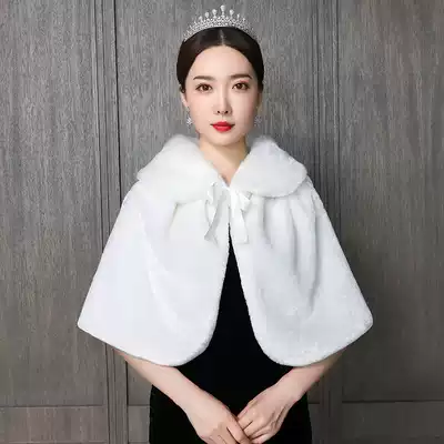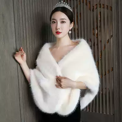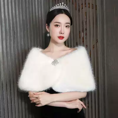 Bride wedding hairy shawl female wedding bridesmaid warm thick dress shawl autumn winter cloak coat imitation fur