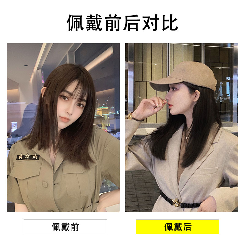 Hat Wig One Piece Female Fashion Summer Cap Long Straight Hair Hat with Hair Fake Hair