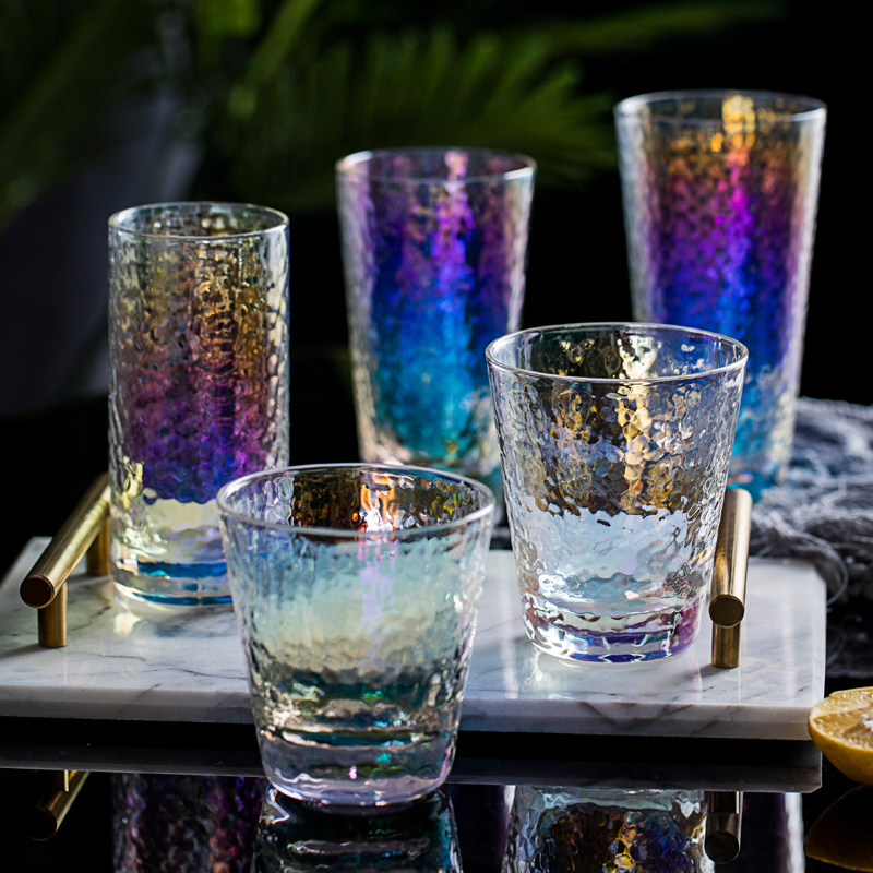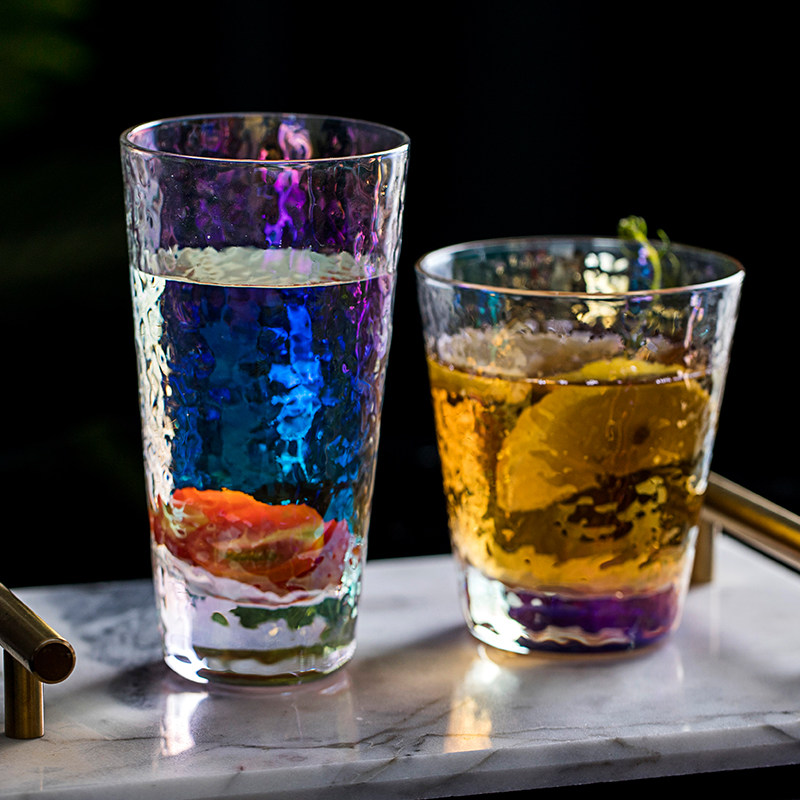 Water glass suit Home Ins cups Color hammer Juice Cups Mesh Red Glass Cups Large Capacity Teacup Wine Glasses