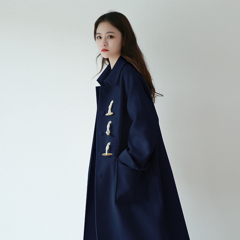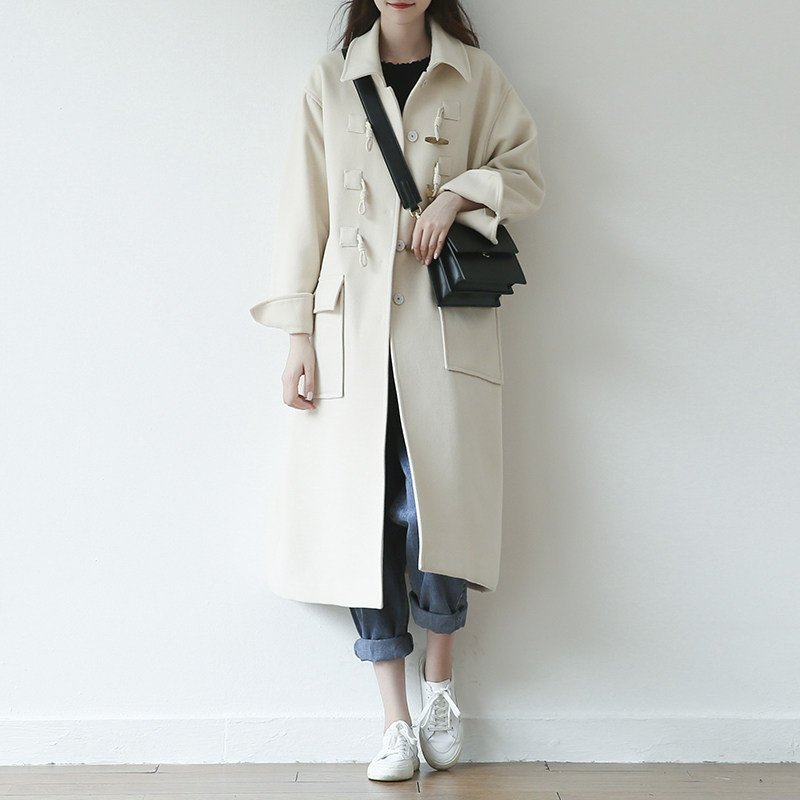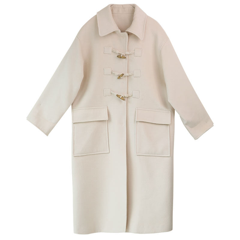 Suin2022 autumn and winter new Korean version of college style beige mid-length horn buckle woolen coat coat female 9275