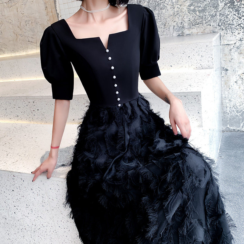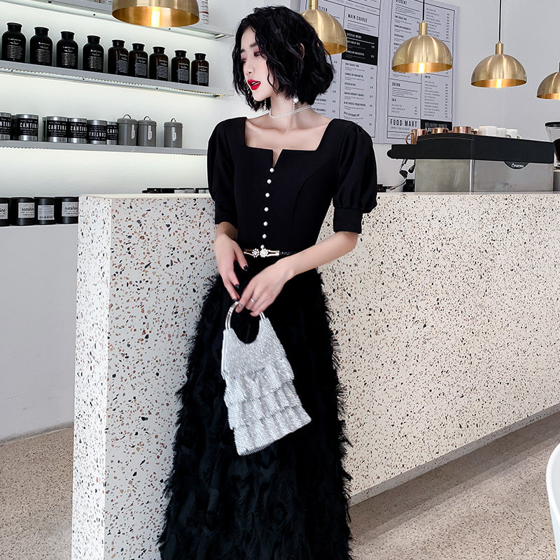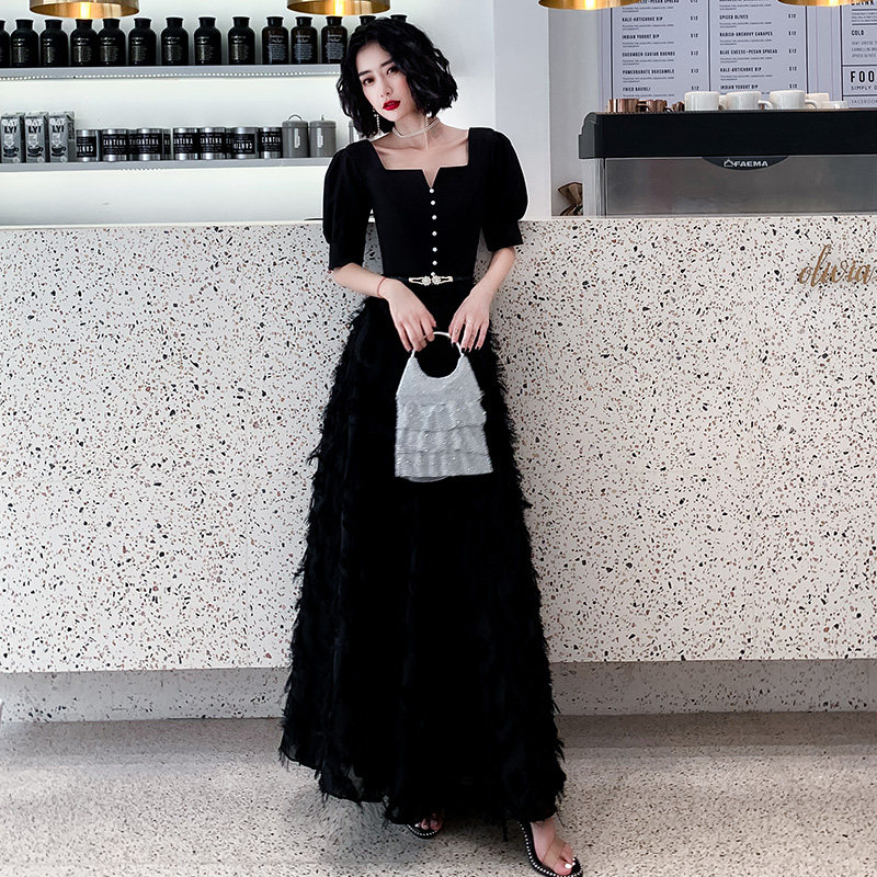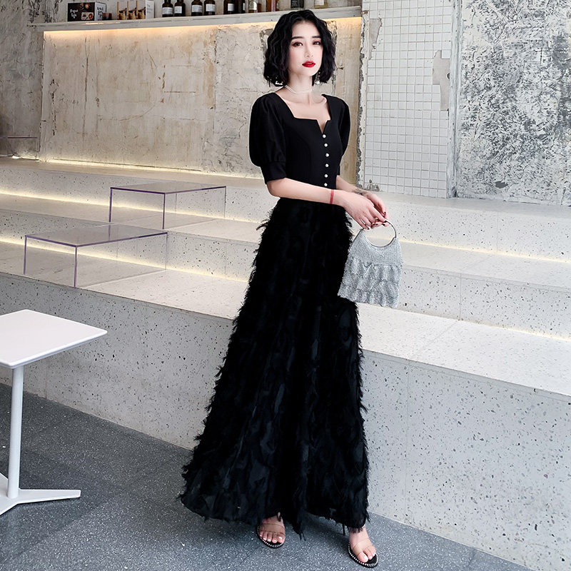 Black evening dress skirt female 2022 new noble banquet temperament long version aura queen host can usually wear