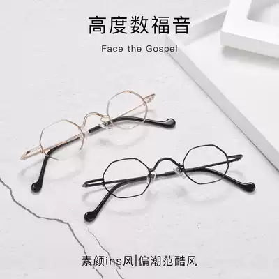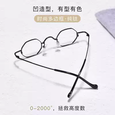 Retro polygon ultra light pure titanium glasses frame men's small frame can be equipped with high degree 1000 degree myopia glasses frame tide tide
