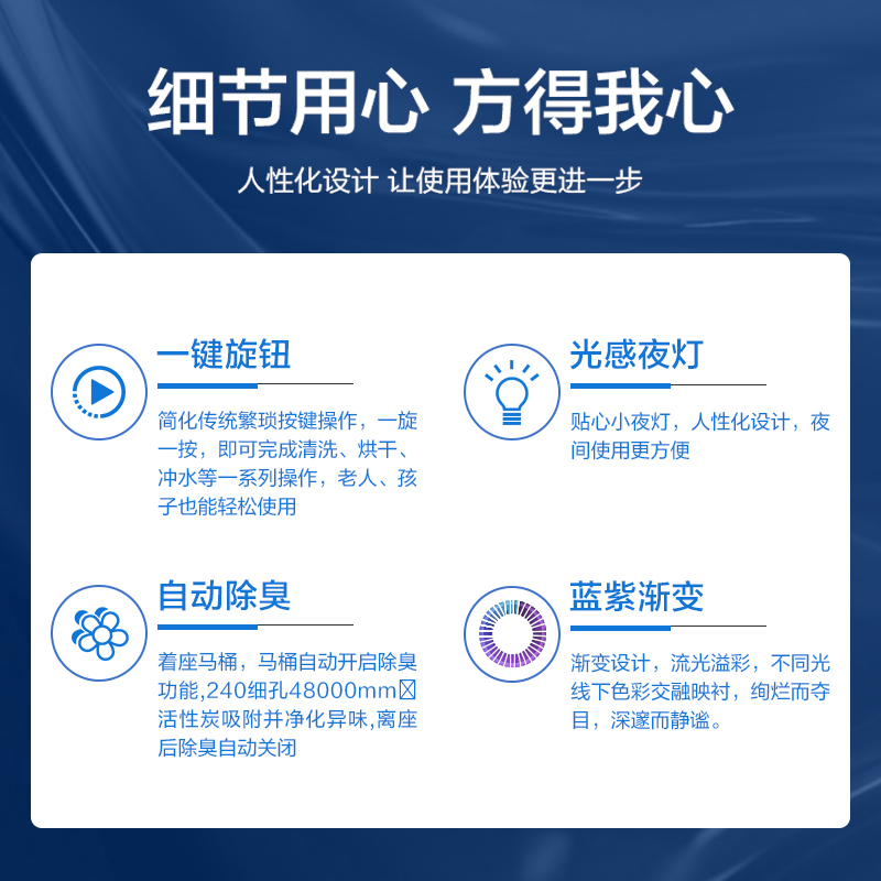 Hip cleaning Female cleaning Seat heating water temperature adjustment Water pressure adjustment Warm air drying nozzle Self-cleaning automatic deodorization remote control nozzle mobile cleaning Instantaneous heat type