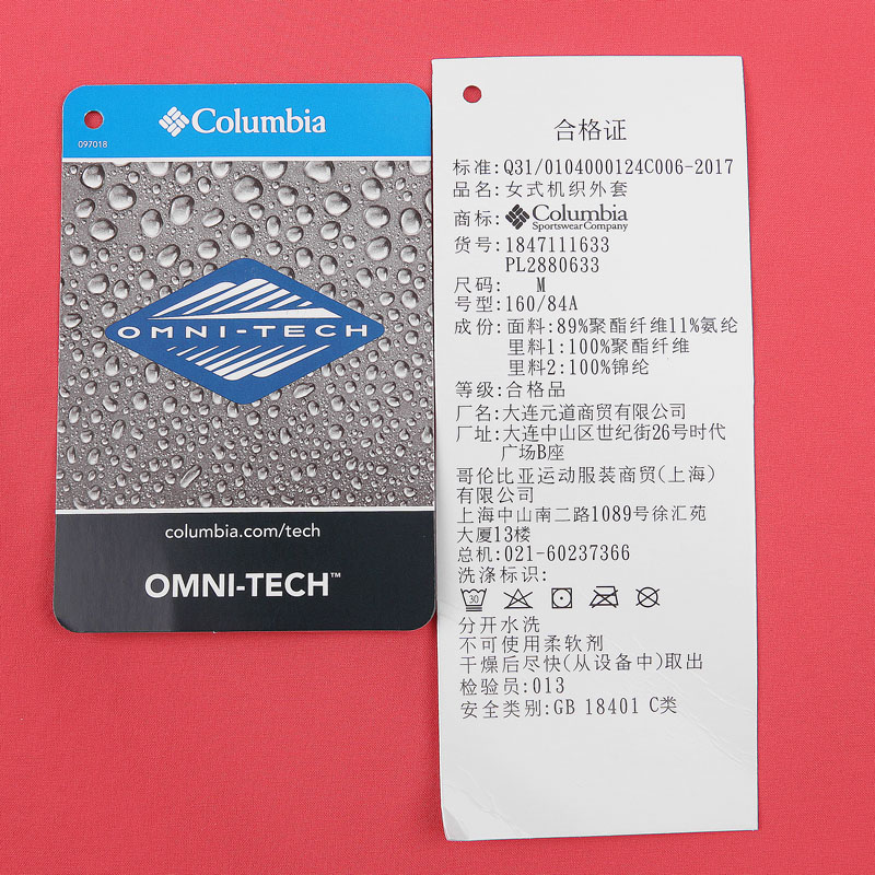 Columbia City, Columbia, Columbia, Columbia, outdoor women's wear and breathable single layer jacket PL2880