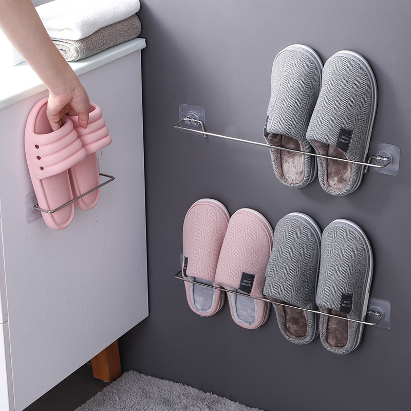 Bathroom slippers rack wall-mounted powder room shoe holder free punching shoe rack shoe storage artifact