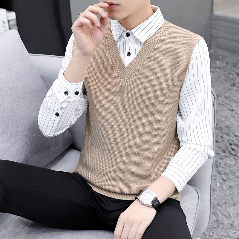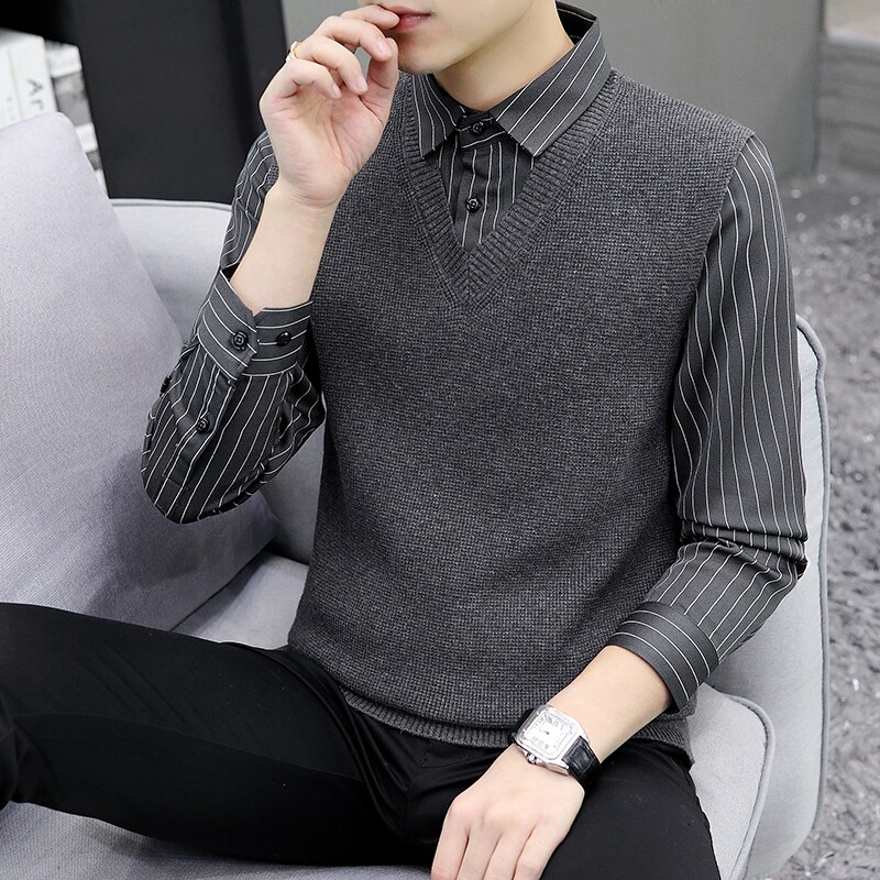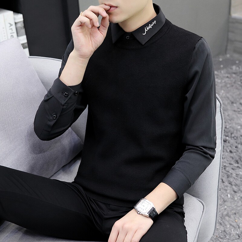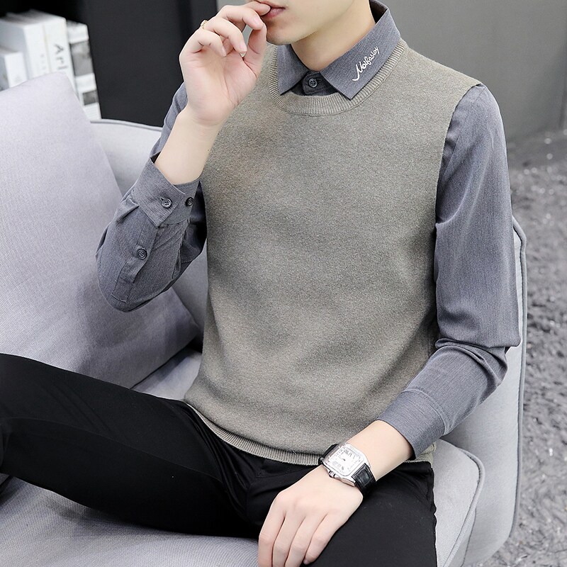 Autumn and winter holiday two-piece sweater men's Korean version 2022 new shirt collar bottoming sweater collar loose sanitary clothing