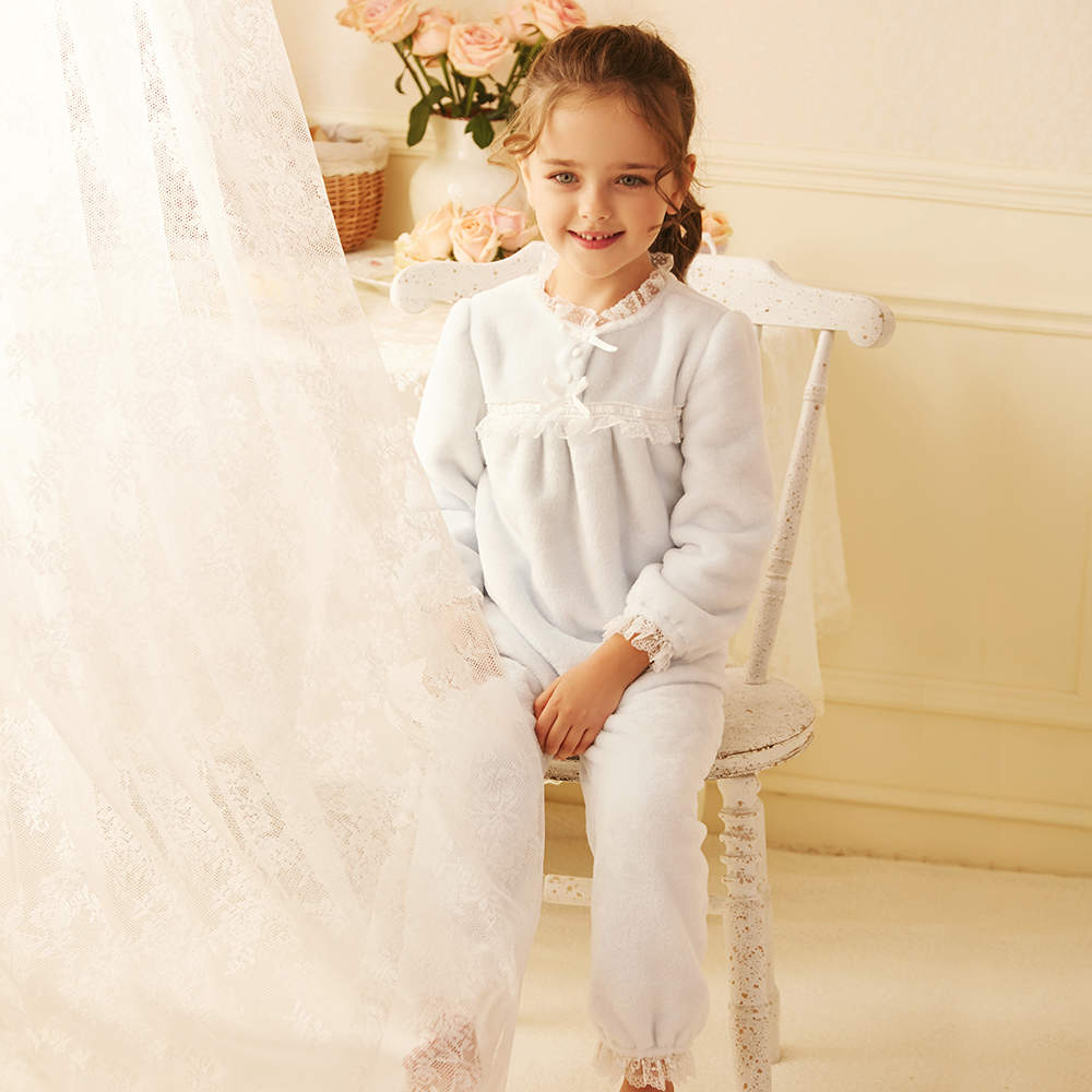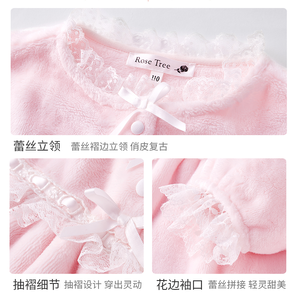 RoseTree girls' flannel pajamas autumn and winter thickened and warm children's coral fleece suit baby home clothes