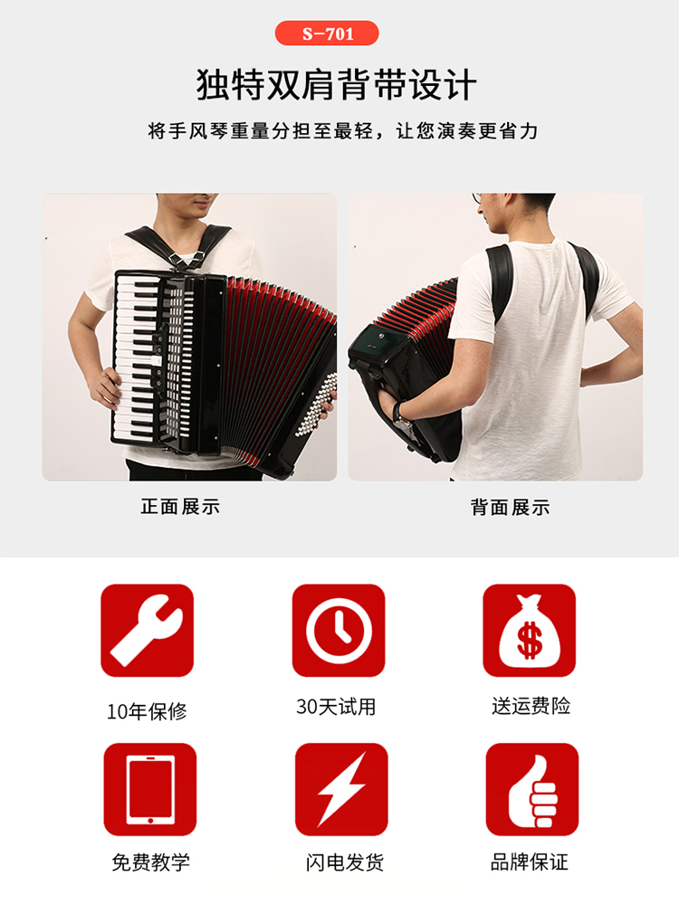 Accordion 60 96 120 bass three and four rows of springs Adult children beginner German imported springs