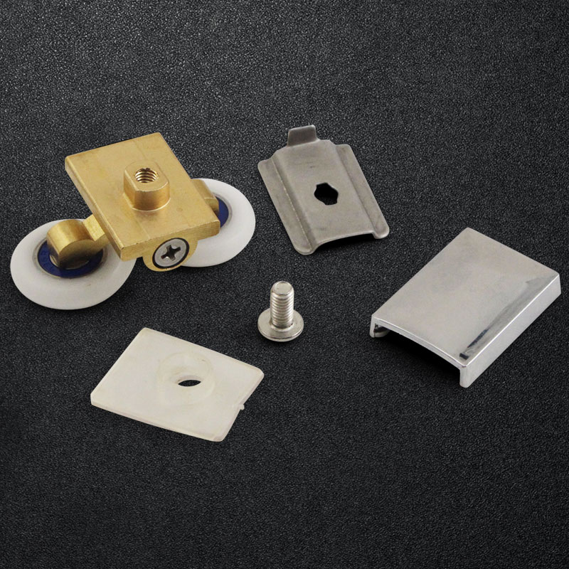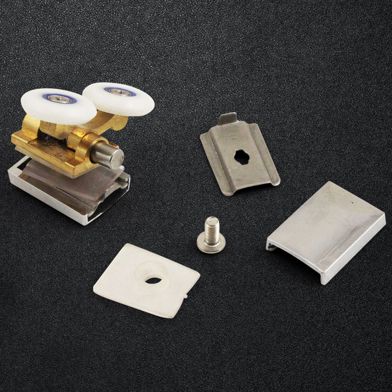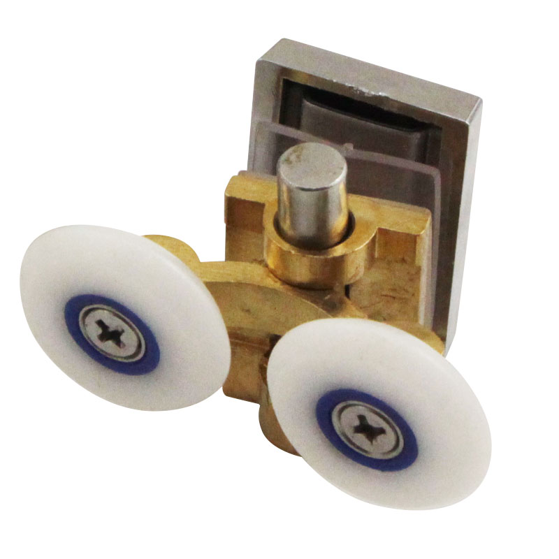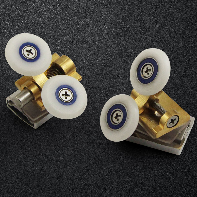 Full copper arc shower room glass door wheel bathroom sliding door hanging pulley Swing rotation double wheel upper and lower wheel roller