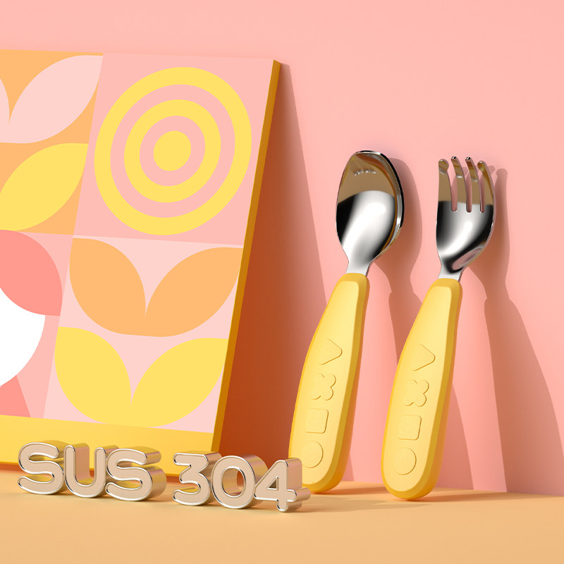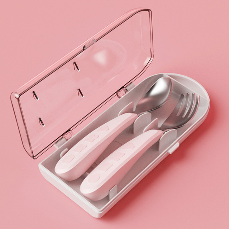 Dudu powder stainless steel fork and spoon (including fork and spoon storage box) Tricky blue stainless steel fork and spoon (including fork and spoon storage box) summer yellow stainless steel fork and spoon (including fork and spoon storage box)