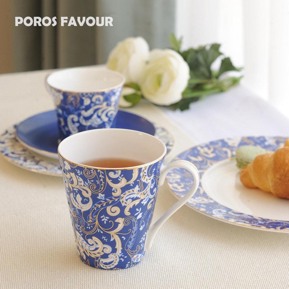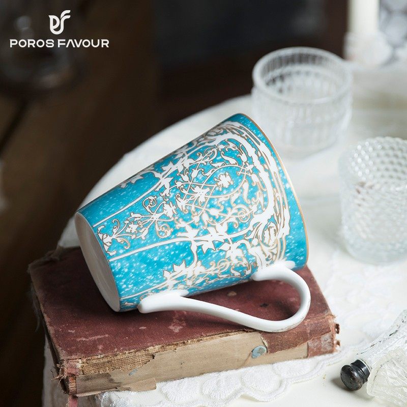 PAGOO Rococo European luxury new product description gold bone china mug coffee tea cup ceramic couple water cup