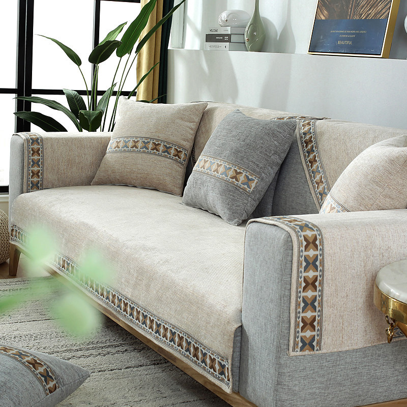 Sofa cushion four seasons universal non-slip fabric cotton linen linen Nordic simple modern leather wood sofa cover back towel