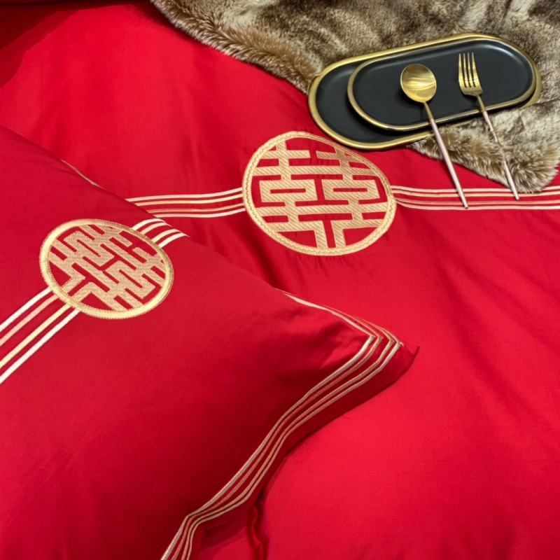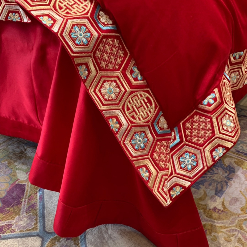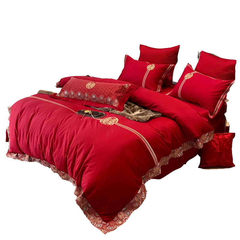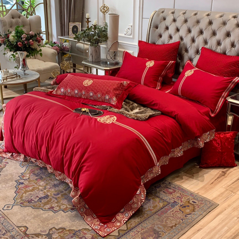 Wedding celebration Four sets of large red embroidery four sets of full cotton pure cotton wedding with four sets of Chinese-style wedding room bedding-Taobao
