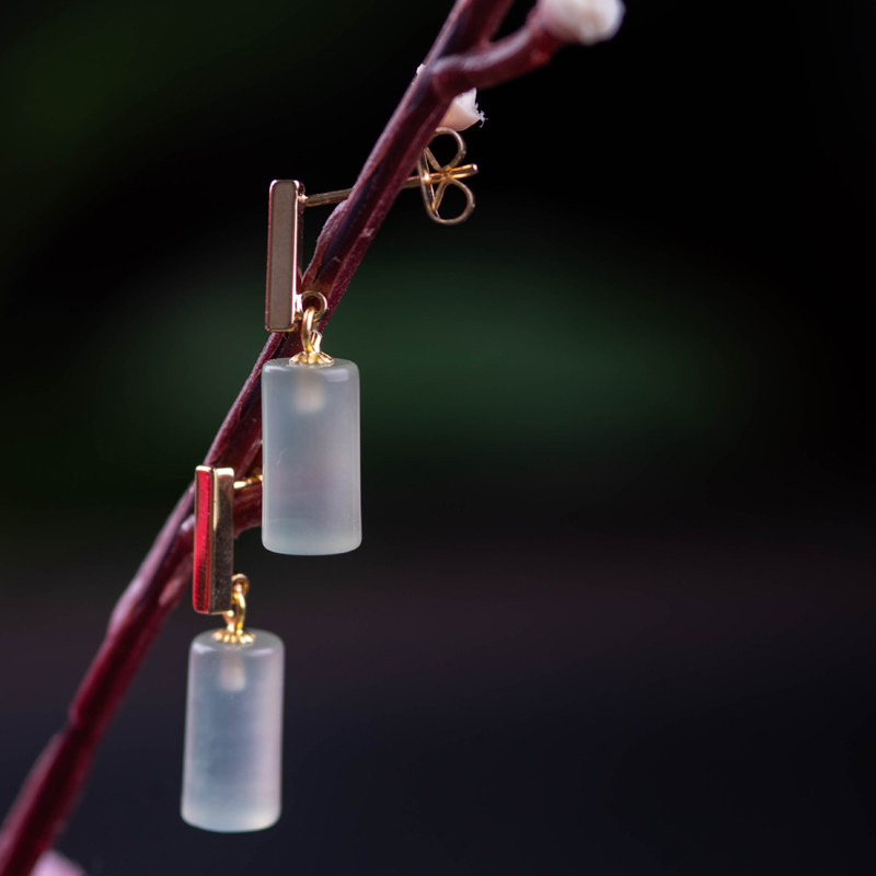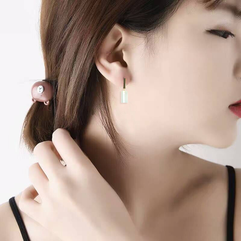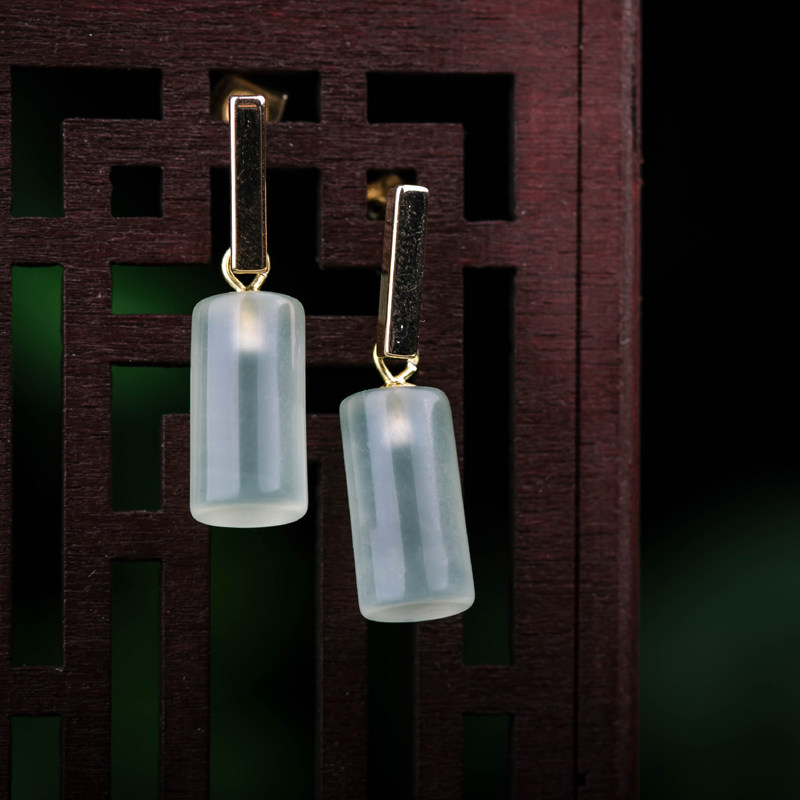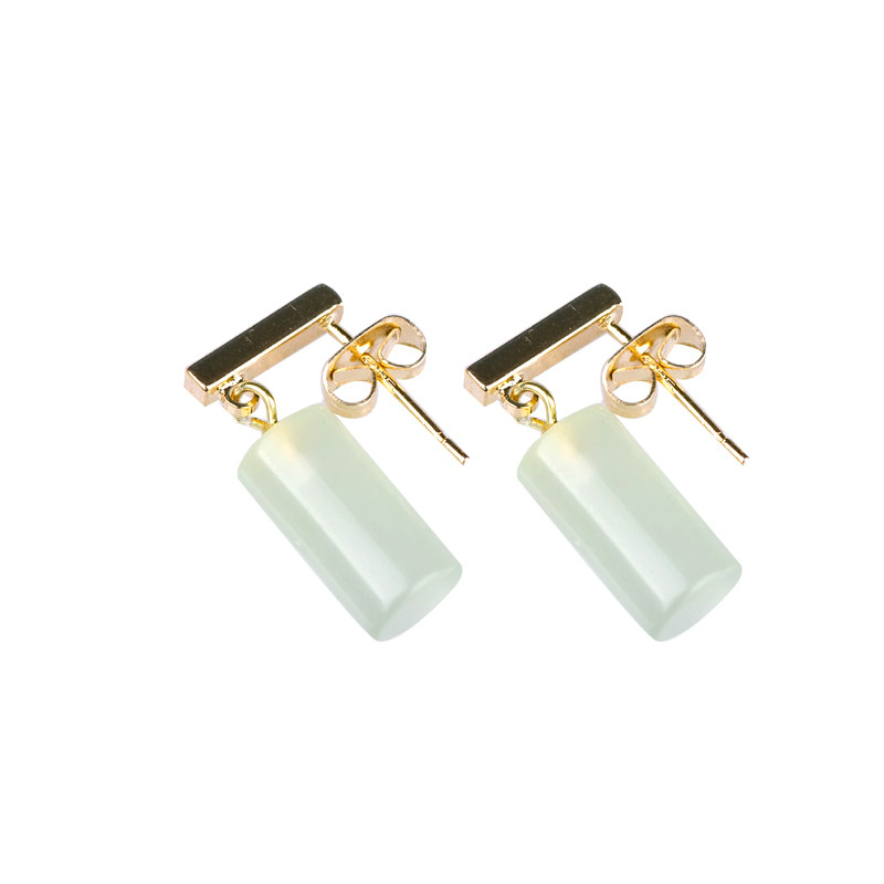 Natural ice species A goods jadeite earrings jade earrings silver plated 18K gold ear pin earrings simple cold wind belt certificate