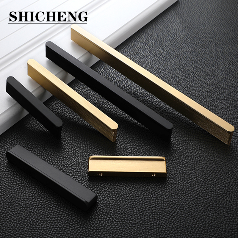 Eurostyle Drawer Wire Drawing Golden Handle Nordic Cabinet Door Handle Wardrobe Whole Cabinet Aluminum Alloy Black Lengthened Door Handle
