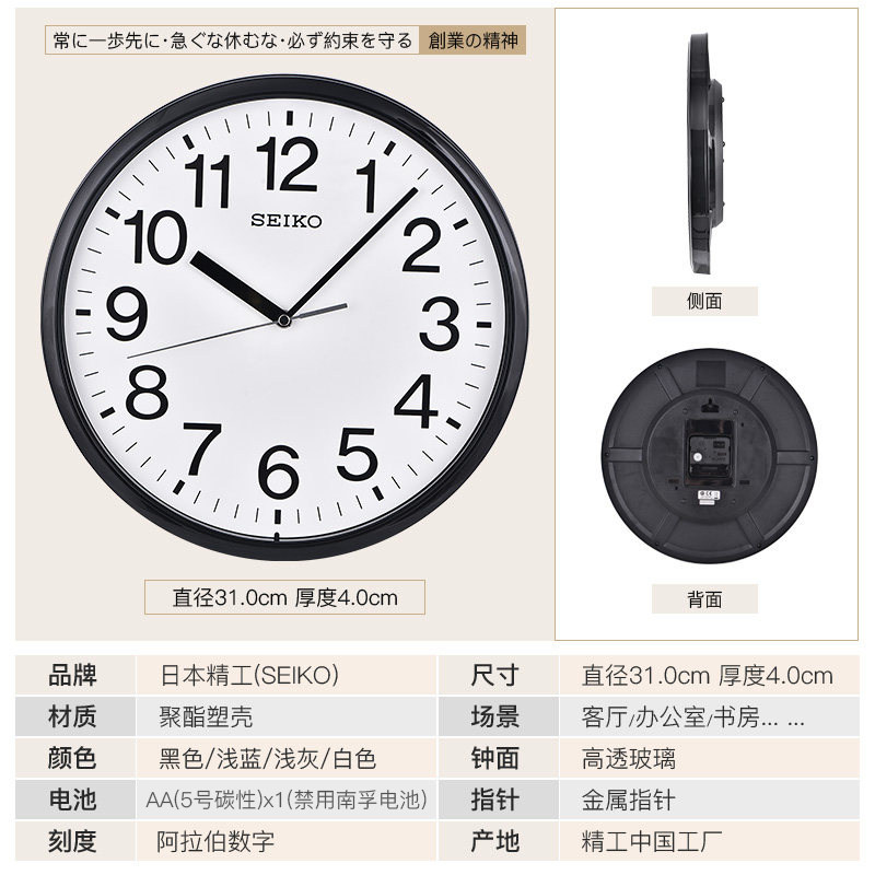 SEIKO Japan SEIKO 12 inch watch modern simple home living room bedroom digital creative atmospheric wall clock