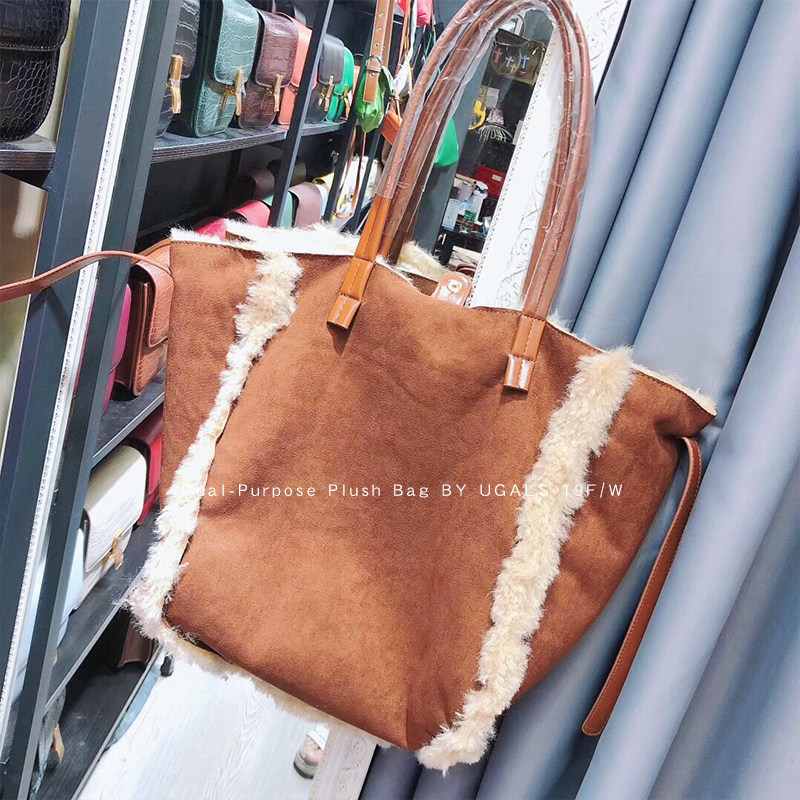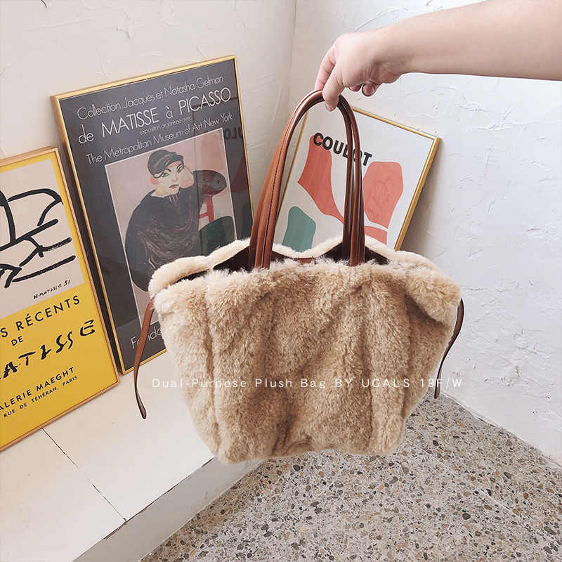 UGALS Winter Large Capacity Mao Mao Shopping Bag Plush Bags Double Bread Double Bag Single Shoulder Hand Messenger Bag