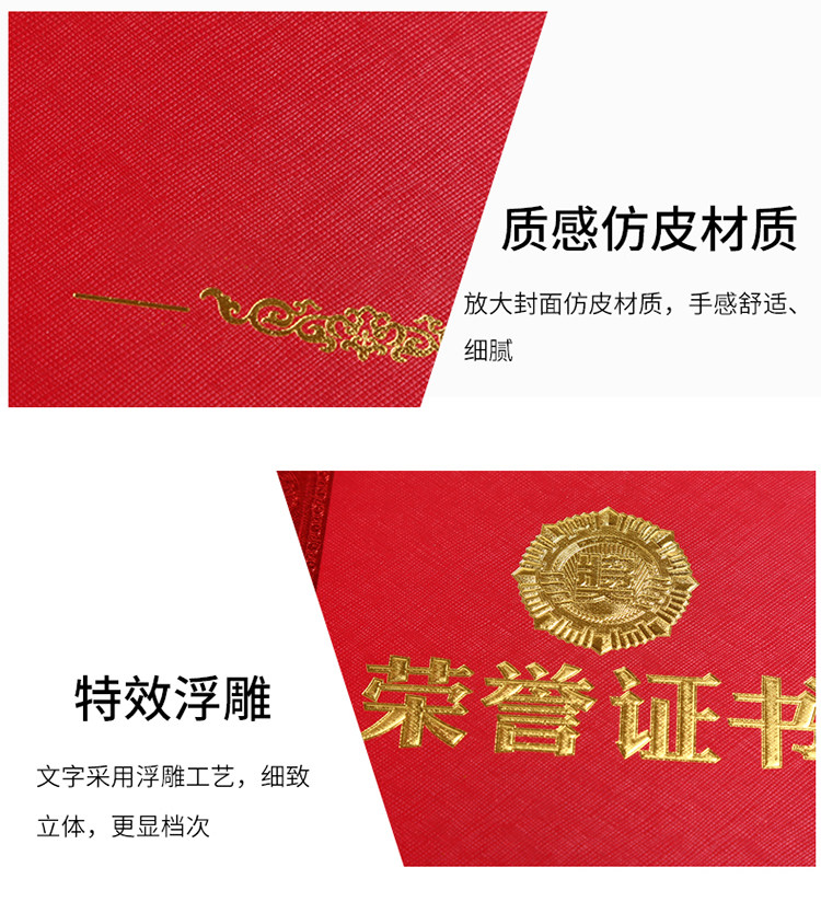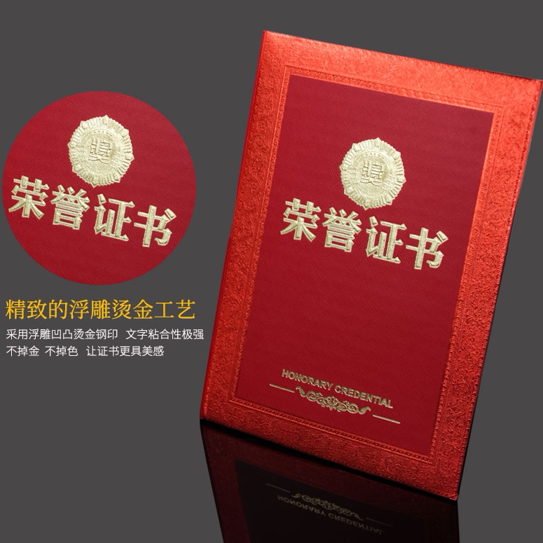 Honor Certificate Cover Leather Relief Award-Shaped Shell A4 Inner Core Cover Seal Leather Excellent Employee Training Course Award Certificate