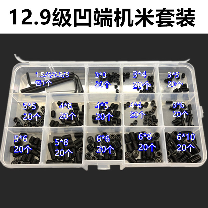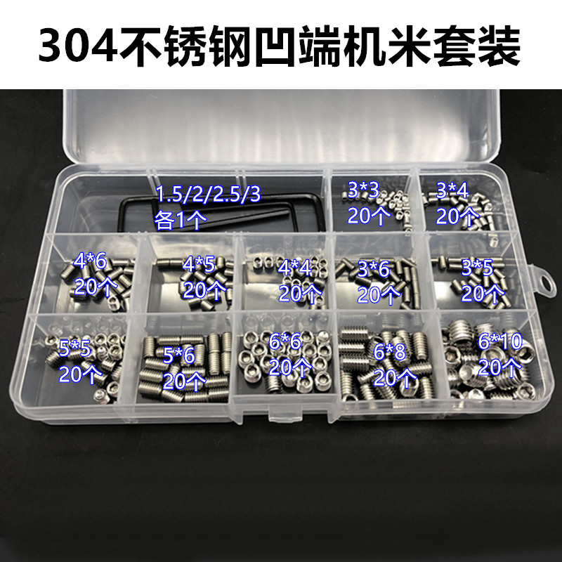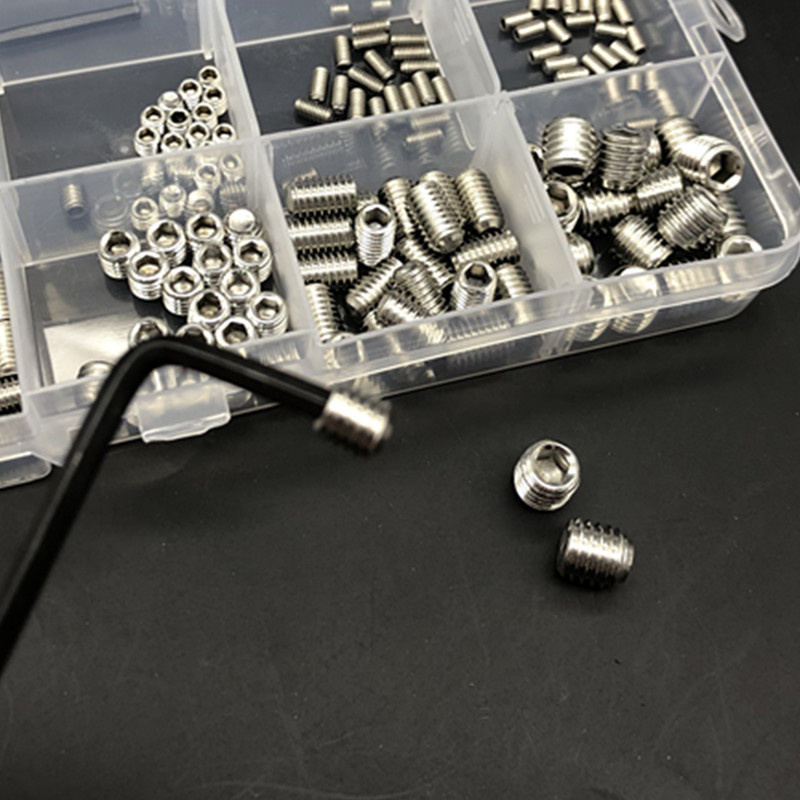 Mixed 12 9m machine set screws 304 stainless steel concave tip flat head hexagon top wire screw kit