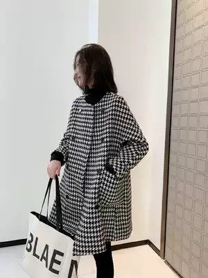 Thousand Bird Jacket Women's Medium Long Edition Europe Station 2021 Autumn and Winter New European Women's Cloak Black and White Hairy Coat