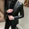 Small suit men's Korean version of the trend spring and Autumn slim jacket PU leather suit casual handsome stand-up collar leather jacket men's clothing