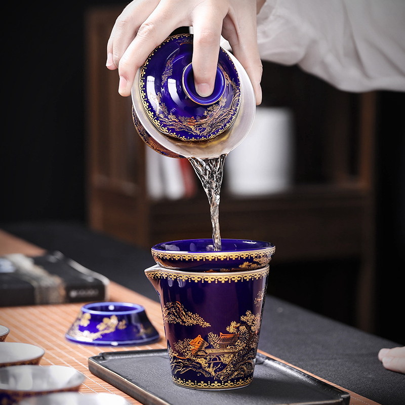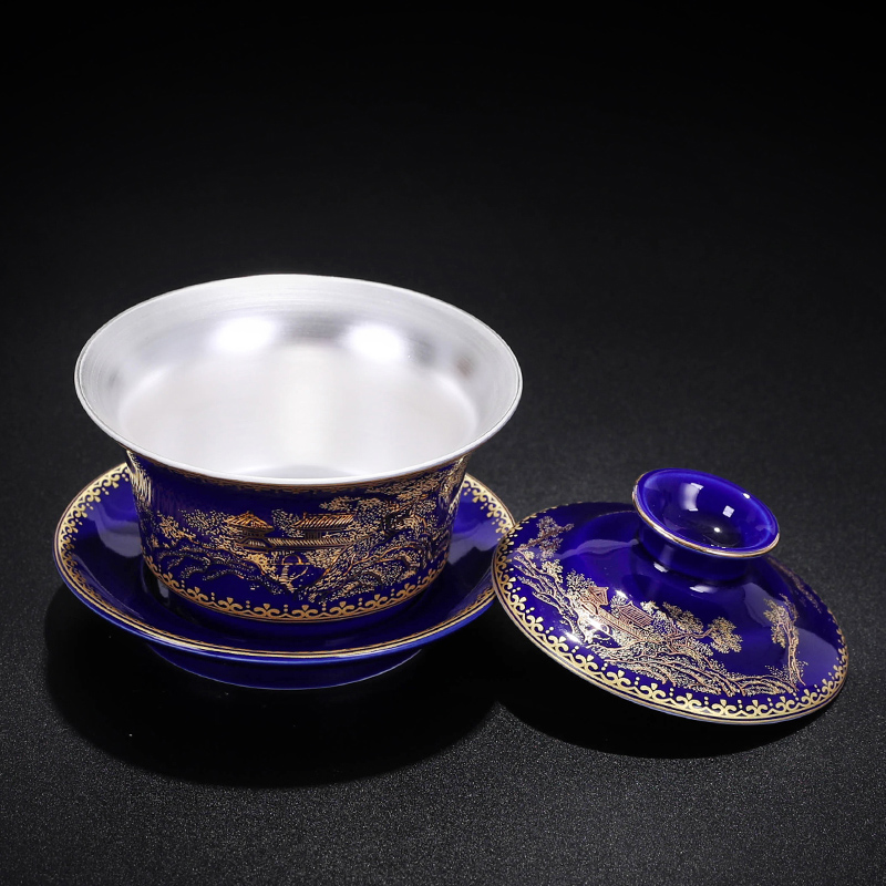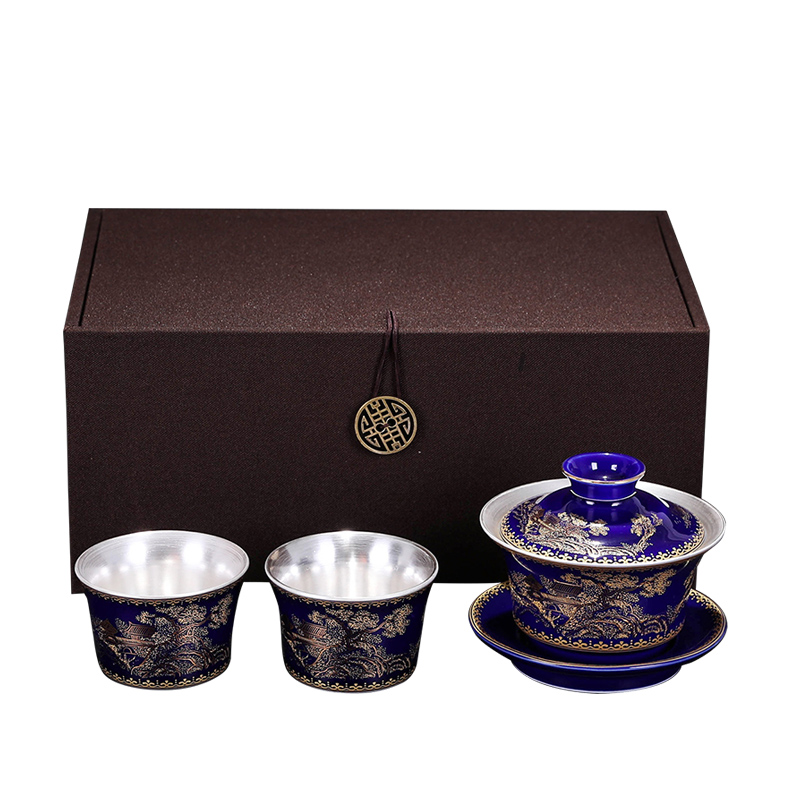 Ji Blue Mountain water cover bowl two cups-gift boxed black Jinshan water cover bowl two cups-Gift boxed Blue Xiangyang cover bowl two cups-Gift boxed yellow Xiangyang cover bowl two cups-Gift boxed Wanhua Splendid cover bowl two cups