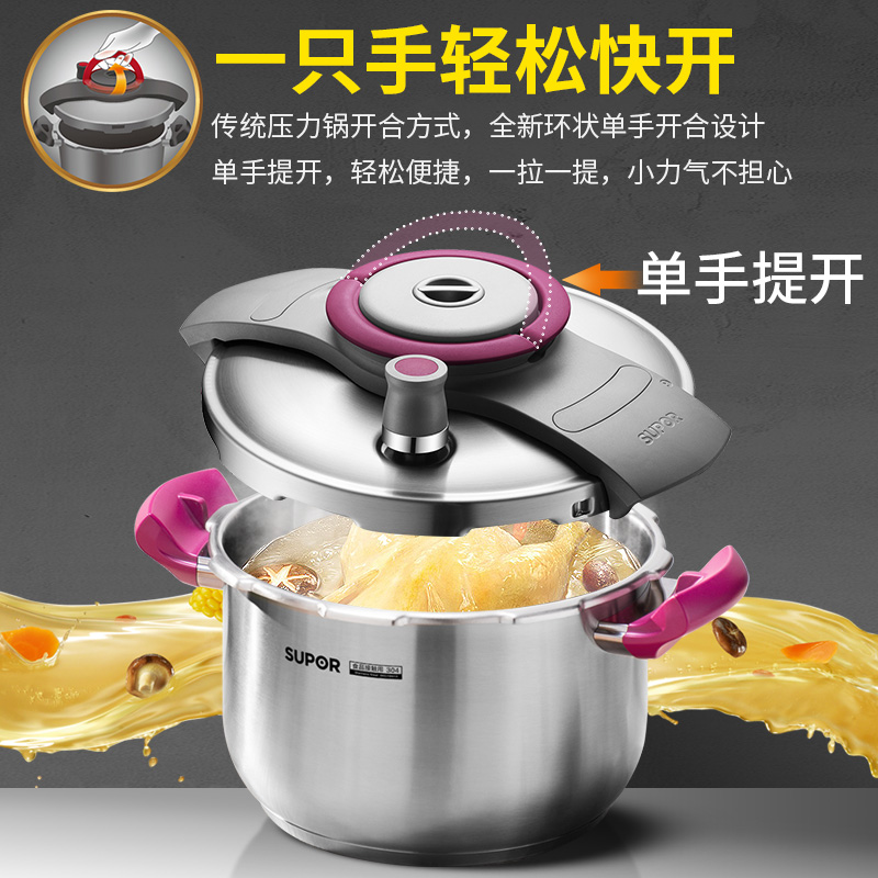 Supoir 304 Stainless Steel High Pressure Pan Please Lift Household Gas Induction Cookers Universal Small Pressure Cooker 1-2-3