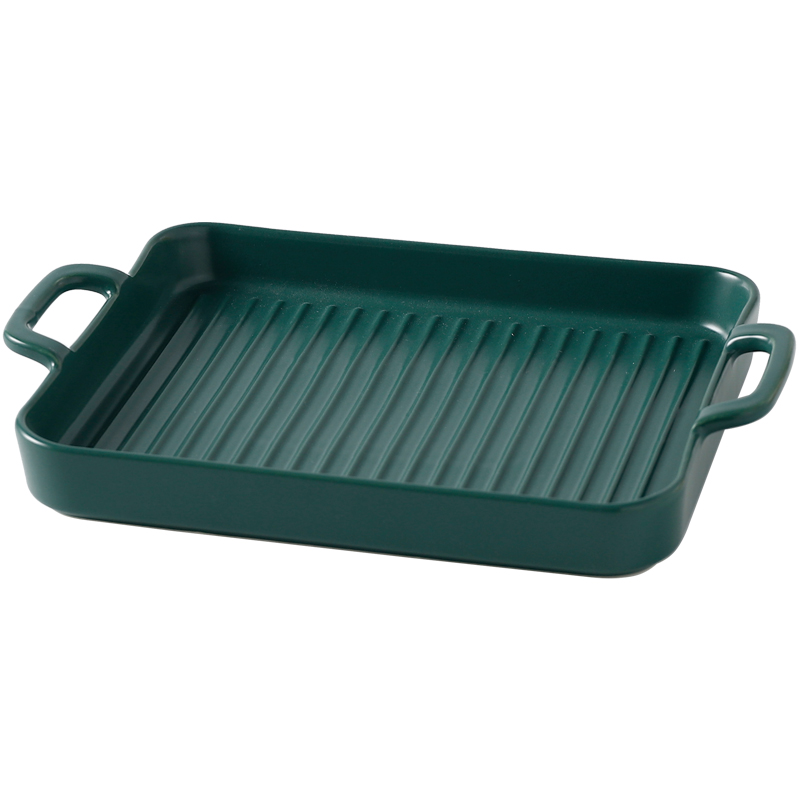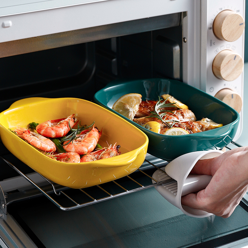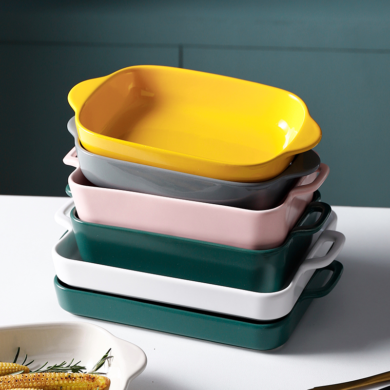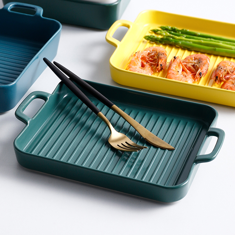 Creative ceramic baking tray Binaural cheese baking rice plate Oven Household microwave oven baking baking bowl rectangular plate