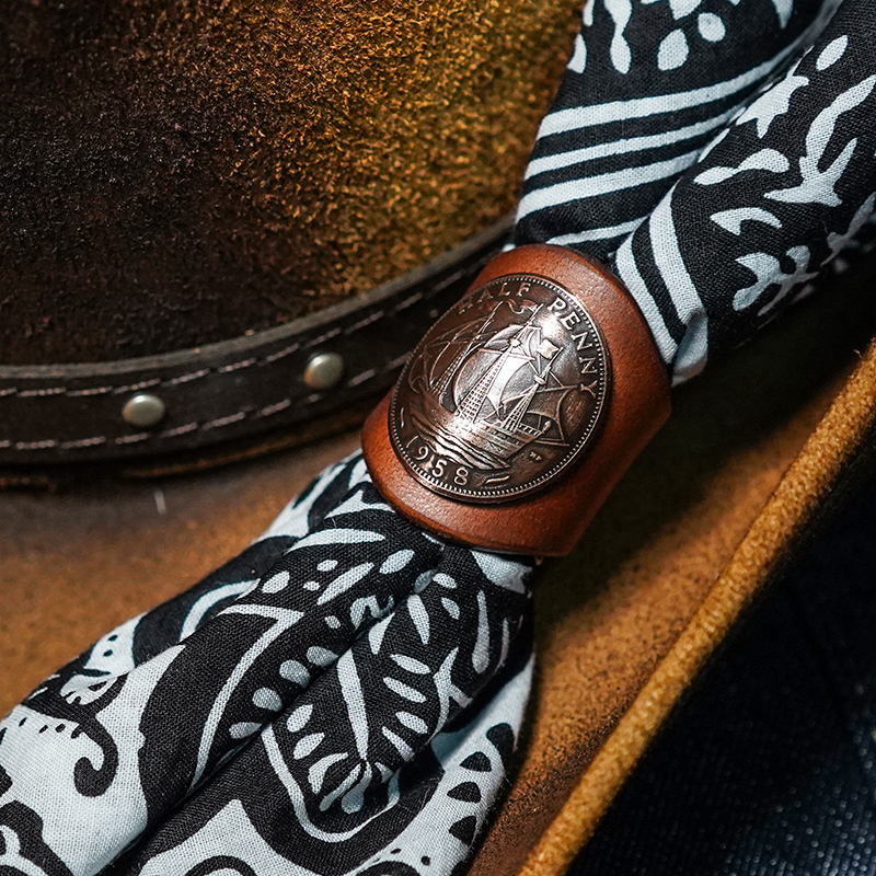 Original personality Ami khaki American retro handmade vegetable tanned cowhide scarf buckle square scarf buckle ins tide Hong Kong style RRL