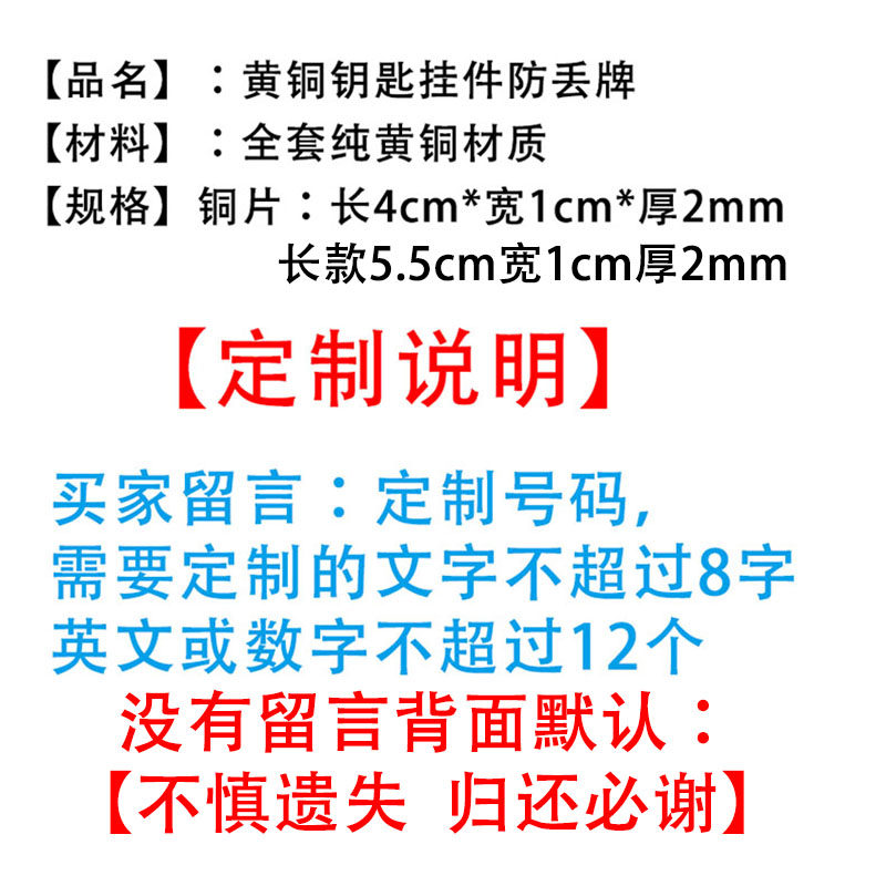 Handmade brass lettering telephone anti-loss number plate men and women personality retro car key ring pendant custom