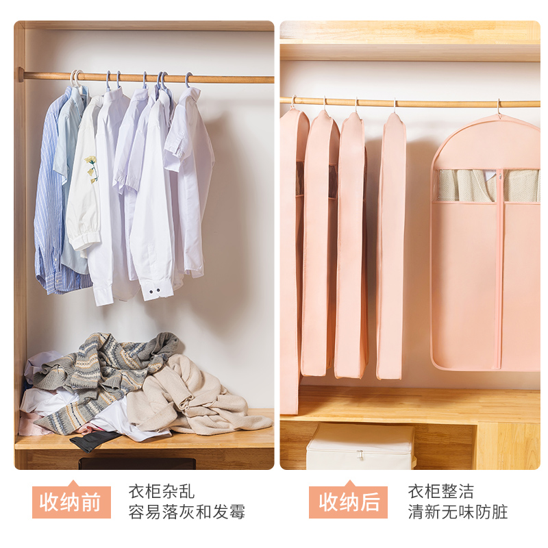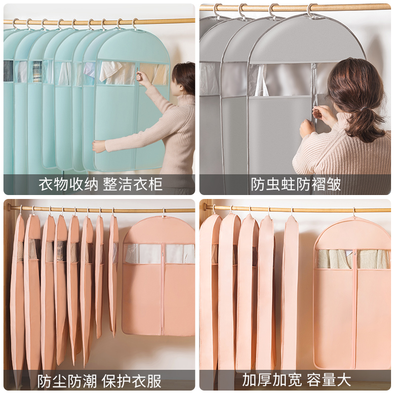Clothes dust cover 2021 new hanger hanging household coat cover clothes transparent non-woven breathable hanging bag