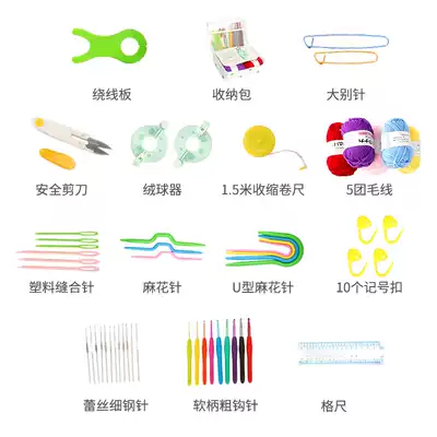 Portable storage crochet set Novice advanced set(storage bag three colors optional)Rose red leather bag storage 52-piece set full set of 58-piece soft handle set Cartoon storage bag 25-piece set of soft handle 9 crochet hooks each