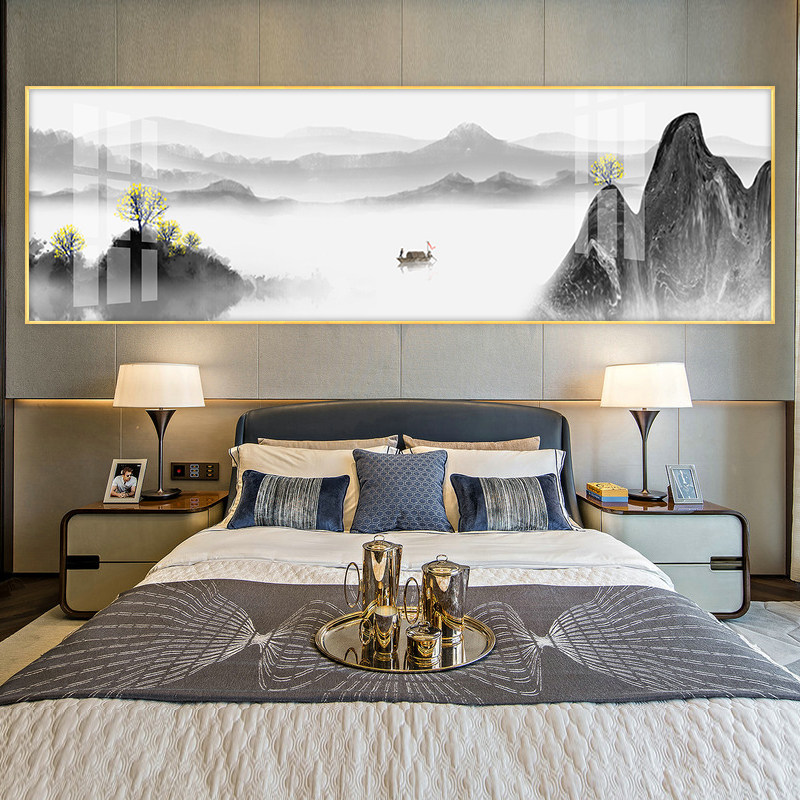 Modern bedroom bed hanging banner master bedroom decoration painting new Chinese living room minimal wall background sofa murals