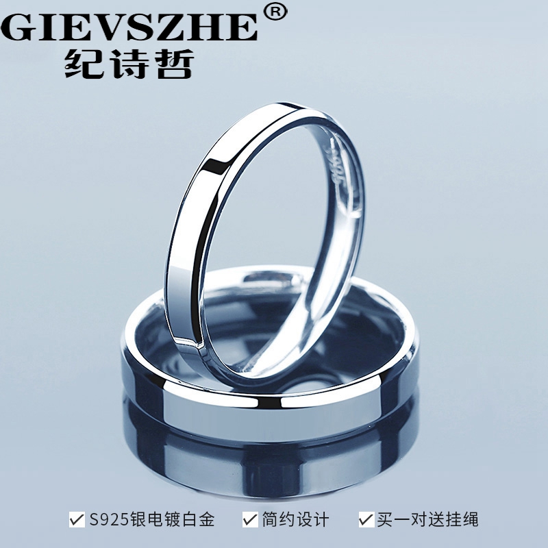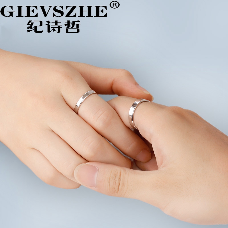 Sterling silver couple ring men and women a pair of niche design open pair ring Japan and South Korea simple fashion personality ring lettering