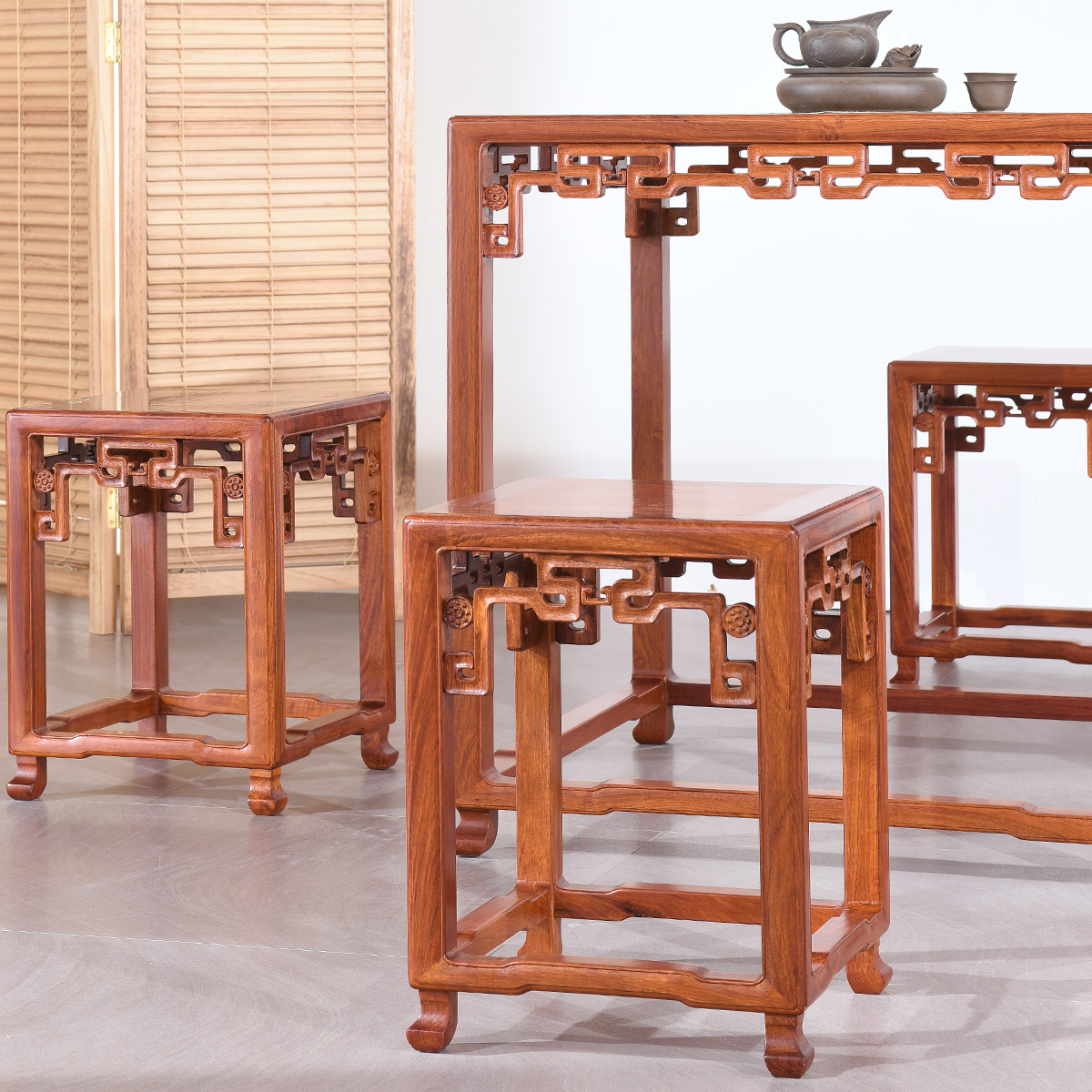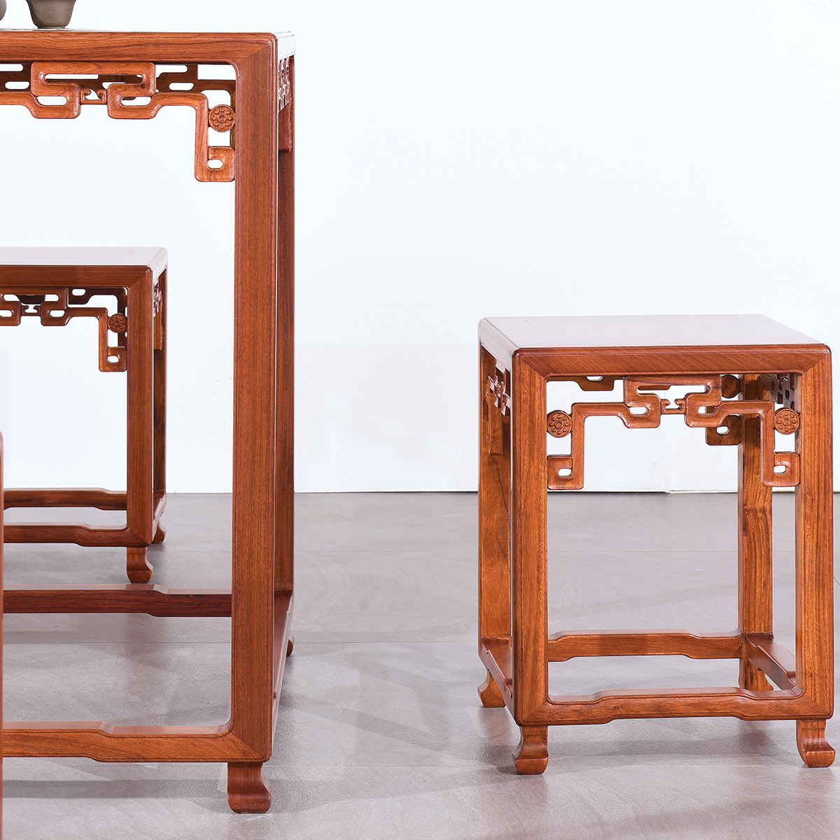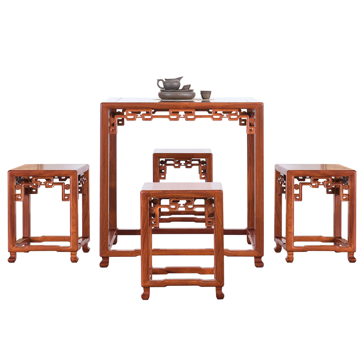 Su Suming style mahogany furniture mahogany square table leisure table Burmese rosewood dining table one table four stool combination