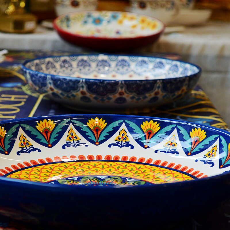 Havana (diameter 22 5cm high about 5cm) birds flying into the forest (diameter 22 5cm meters high about 5cm) blue orange blossom (diameter 22 5cm high about 5cm) blue retro flower