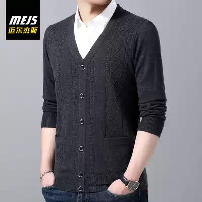 Dad autumn sweater jacket Middle-aged and elderly men's wool cardigan jacket Wool clothes men's elderly cardigan sweater
