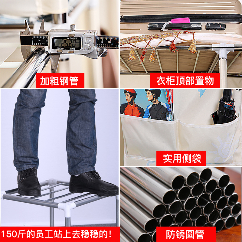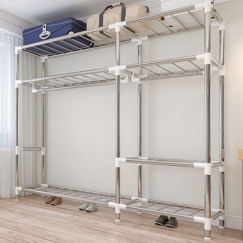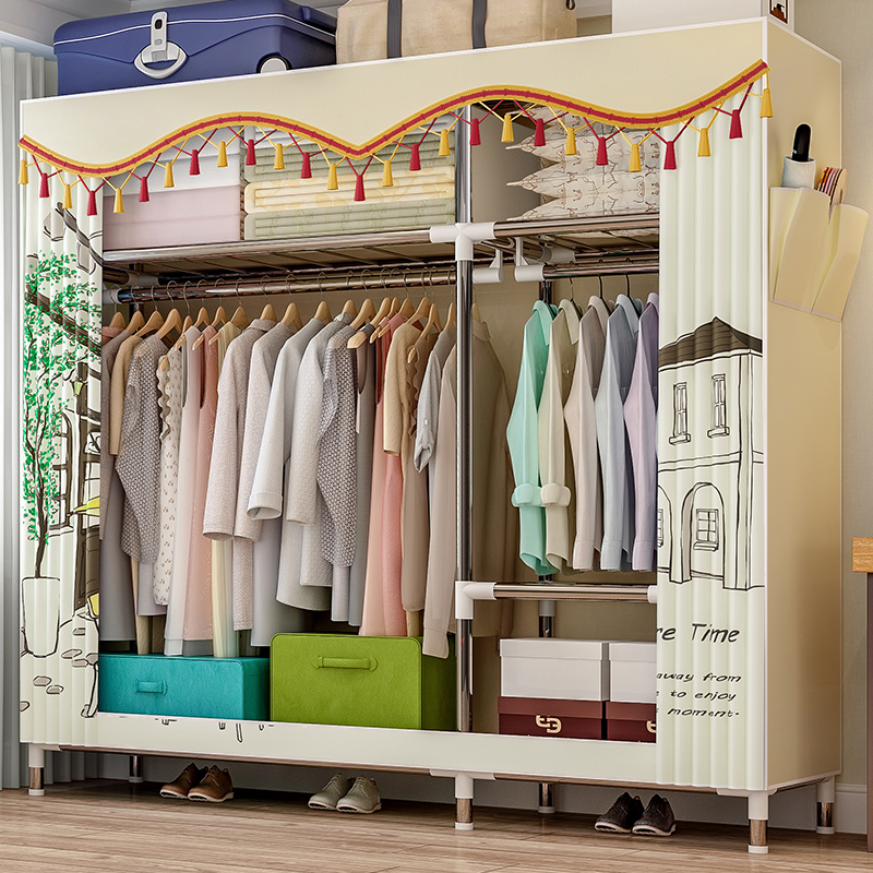 Simple wardrobe Simple modern economical cloth cabinet Steel pipe thickened reinforced all-steel frame double fabric storage cabinet