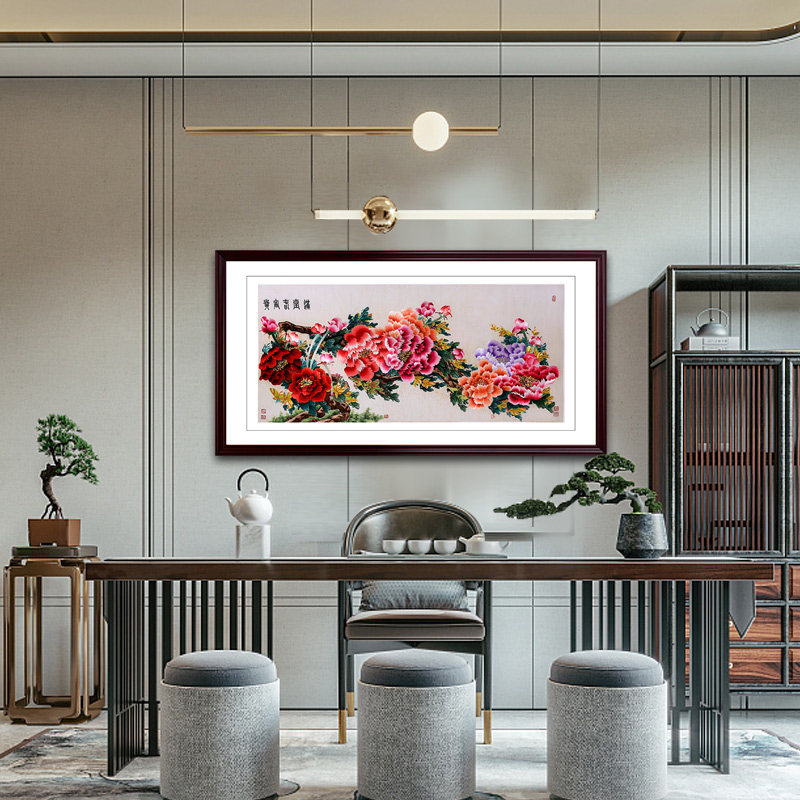 Jin Wu Xiaojiao pure hand-made embroidery finished product hanging painting Suzhou embroidery painting of the basalt living room Chinese decoration painting rich peony