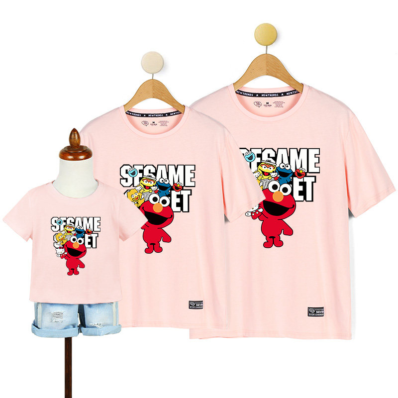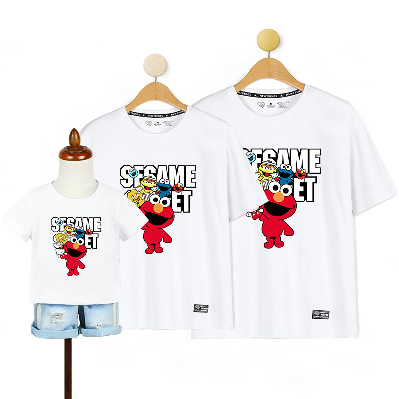 Frying Street Family Family Family Family Fashion 2023 New Yangtze Cotton Sesame Street Short Sleeve T - shirt