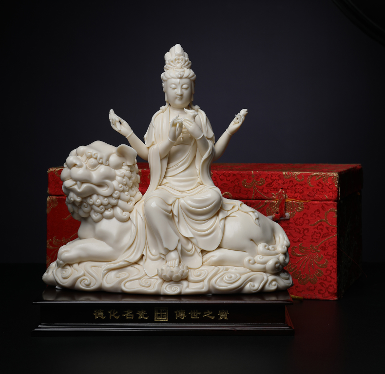 Dai Yutang Ceramic Decoration "Jade Yellow Porcelain Amati Guanyin" Lin Jiansheng Guanyin Buddha Statue Living Room Decoration