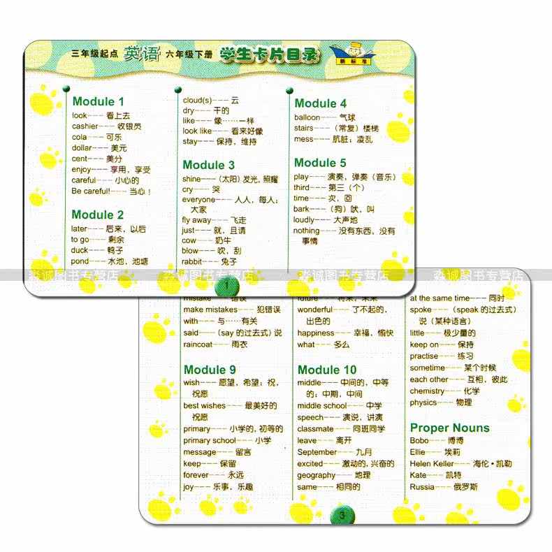 New standard English sixth grade lower register student card WY external research version (3rd grade starting point) external research community elementary school 6 grade lower register English teaching material synchronized letter single word learning with student tool card primary school