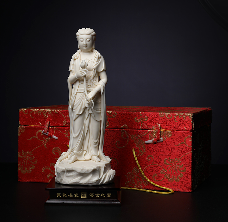 Dai Yutang Ceramic Decoration "Jade Yellow Porcelain Dolozun Guanyin Bodhisattva" Lin Jiansheng Buddha Statue Living Room Artwork