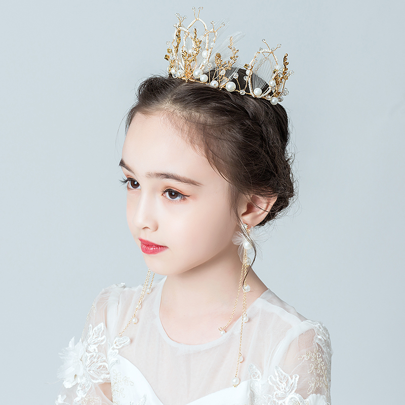 Children's birthday Crystal Wang Crown Accessories Girl Hair Accessories Crown Headwear Princess Hair Hoop Water Drill Flowers Children Show Ornaments-Taobao